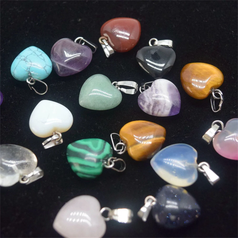 1.5cm Boutique Natural Stone Jade Heart Heart Shaped Necklace Pendant Personalized Agate Pendant Heart Shaped Buckle Jewelry