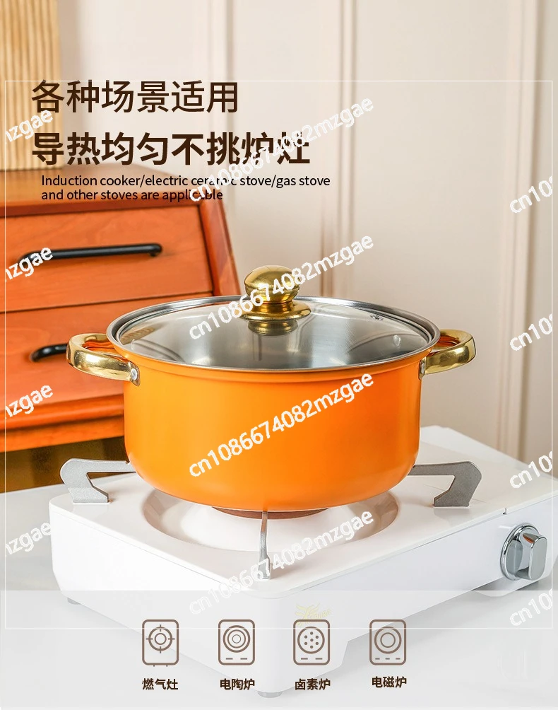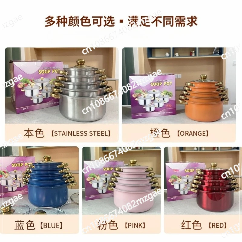 10-Piece set of pots and pans Binaural stainless steel soup pot Orange kitchen universal