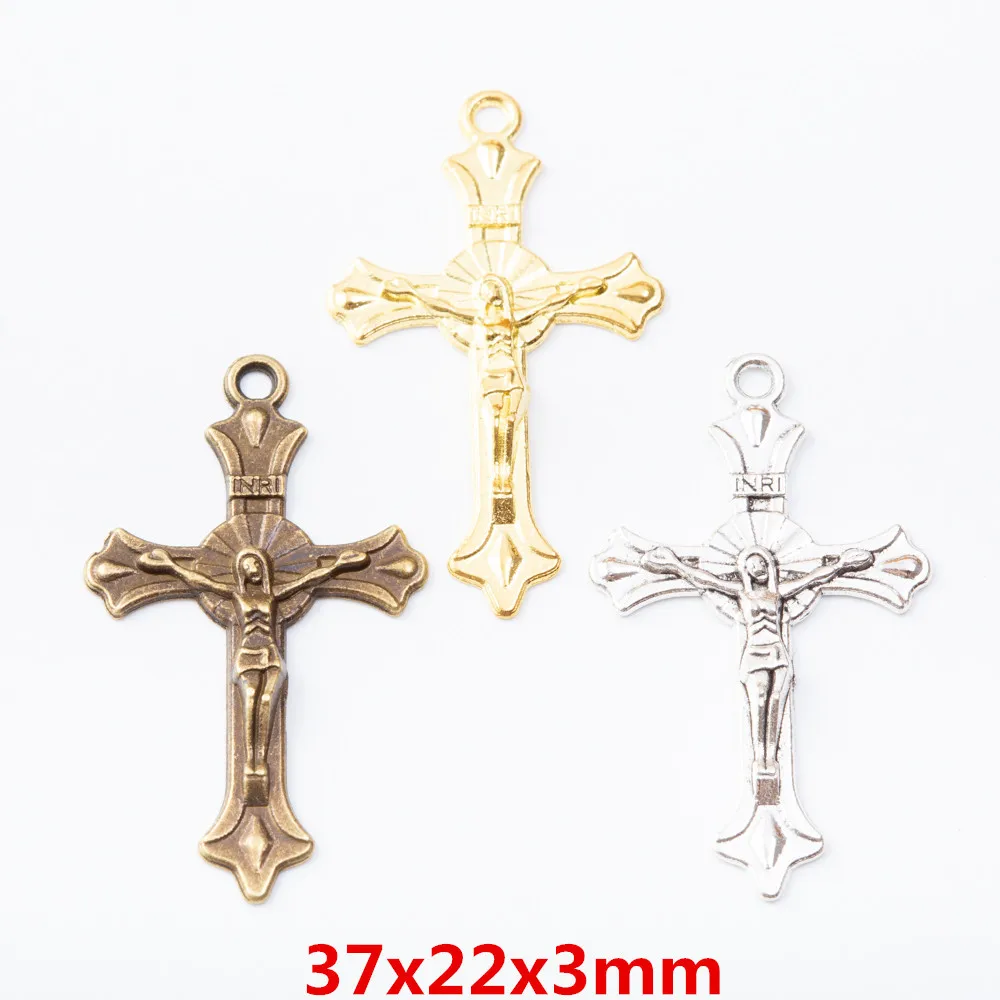 10 Pieces/Lot 37mm*22mm Antique Silver Plated Jewish Crucifix Alloy Cross Charms For Diy Jewelry Making