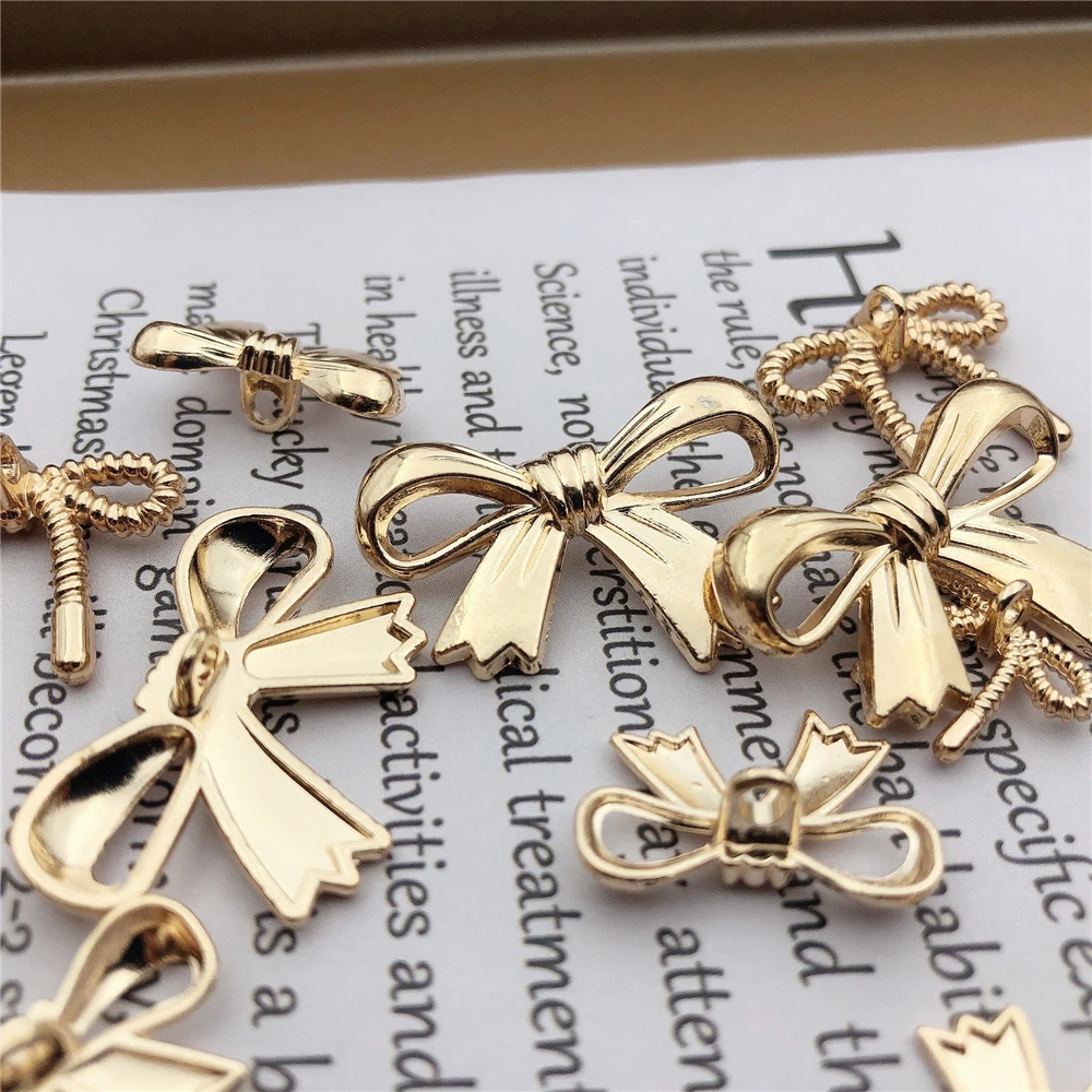 10pcs Golden Bow Shaped Metal Buttons,Sewing Accessories for Clothing Buttons, Suitable for Knitting Sweaters, Dresses, Shirts