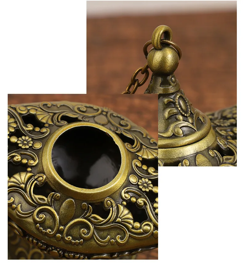 12cm(4.7")Classic Rare Hollow Legend Aladdin Magic Genie Lamps Incense Burners Retro Wishing Oil Lamp Home Decor Gift