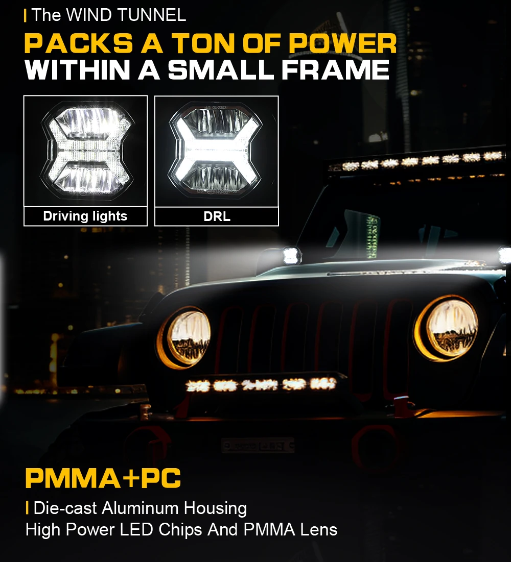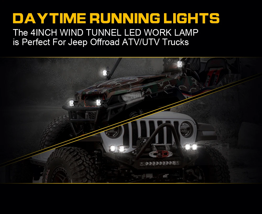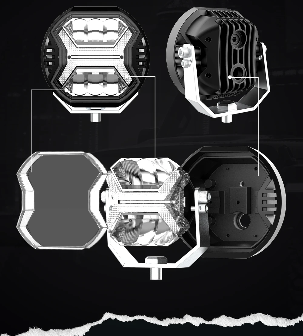 [ LED PODS MATERIAL ] The 4 inch LED flood lights with electronic thermal management and adjustable bracket, use anti-corrosion material, double insulated silicon rubberized wire. 304 stainless steel mounting screws set included full aluminum alloy housing. Premium PC(Polycarbonate) lens has 100% light transmittance, which more comprehensively reduces the waste of light.