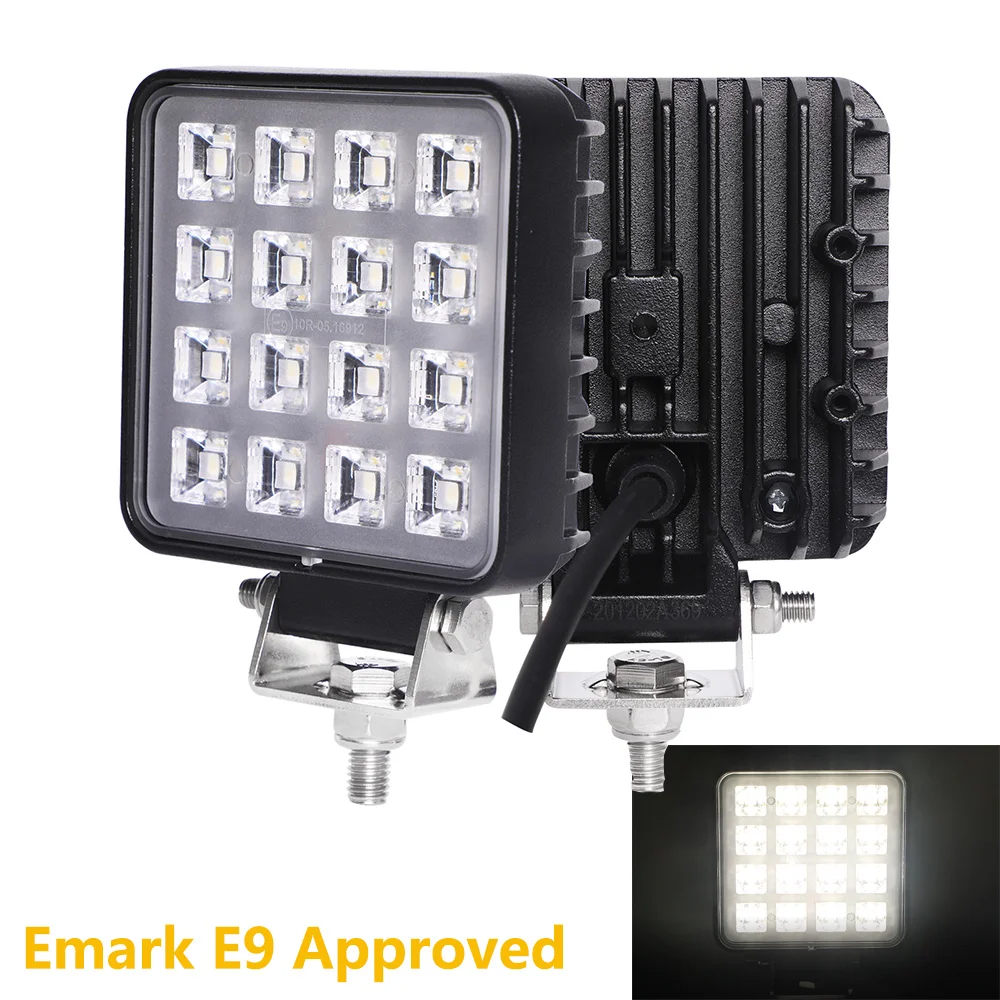 1Pair E-mark 4 Inch LED Work Lights 48W 12V 24V Flood Light Bar for Truck Jeep Lada Off Road 4x4 ATV UTV Boat Auxiliary Light
