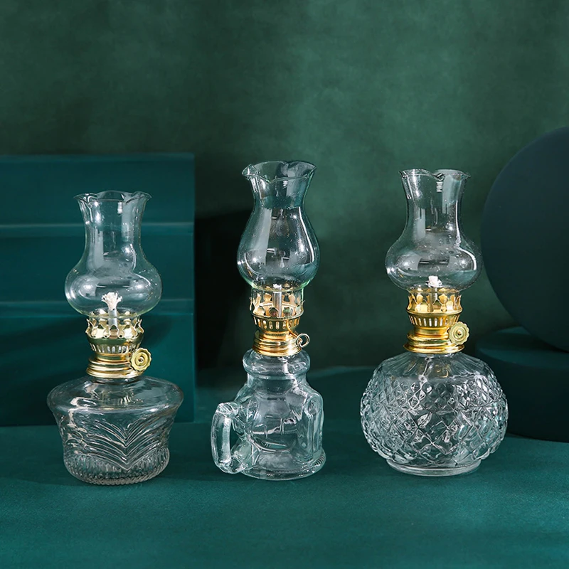 1pc Adjustable Flame Glass Kerosene Lanterns Retro Oil Lamp Glass Family Decorate Lights Portable Adornment Halloween Room Decor