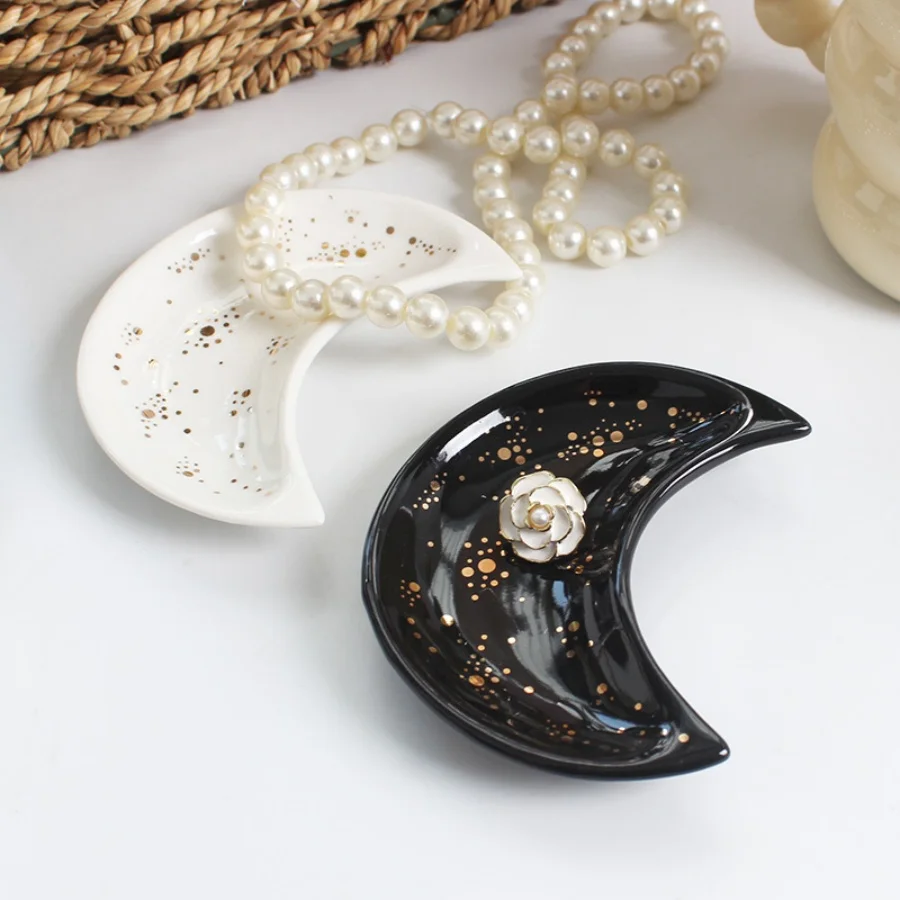 1pc ceramic moon jewelry dish Middle East Arab Ramadan Eid al Fitr storage dish multifunctional dish home decoration ornament