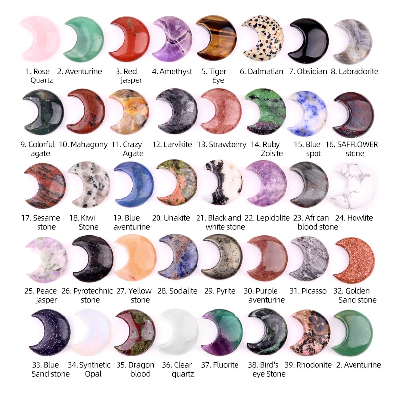 1PC Moon Shaped Natural Stones Healing Reiki Crystal 30mm Carved Gemstones for Meditation Balancing Home Decor