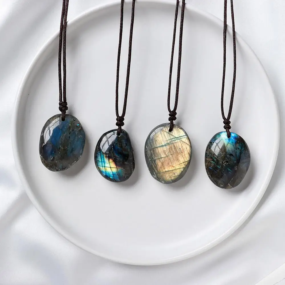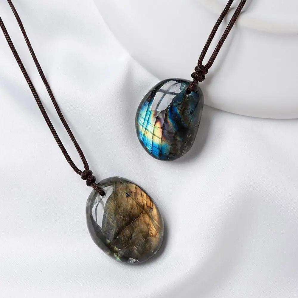 1PCS Natural Labradorite Pendant Necklaces Men Women Energy Quartz Necklaces Stones Ornament Moonstone Home Decoration
