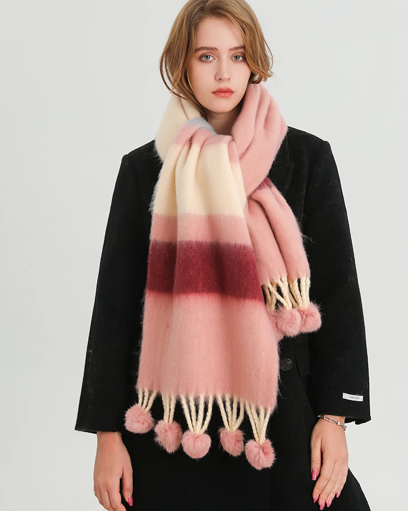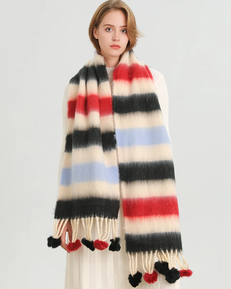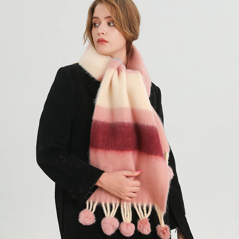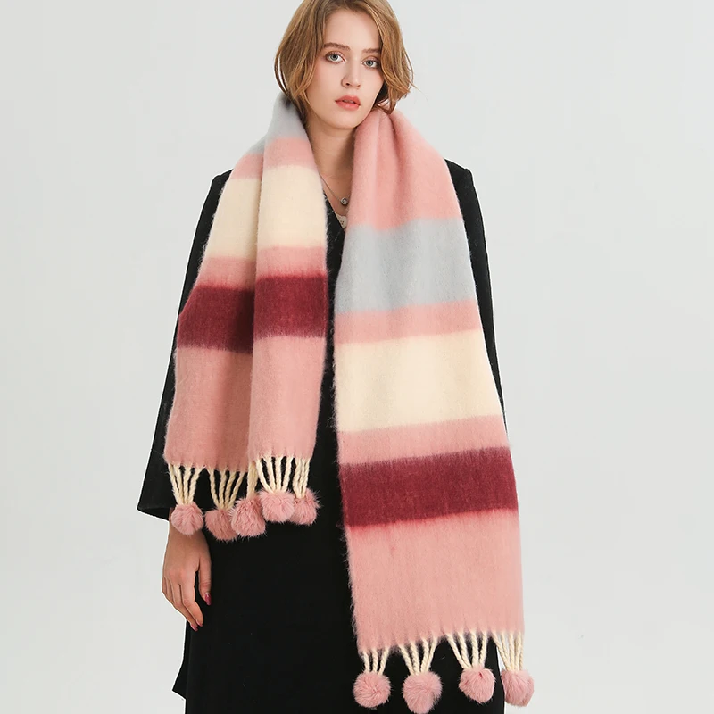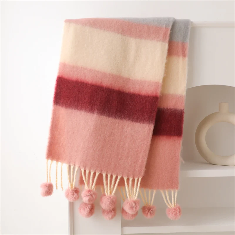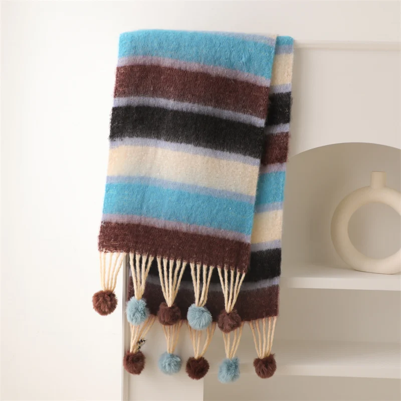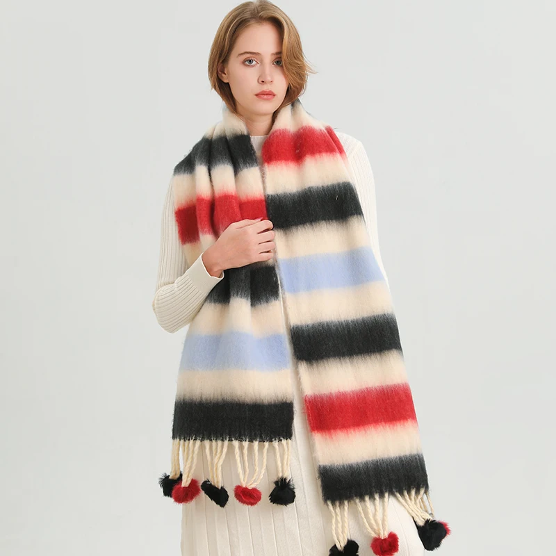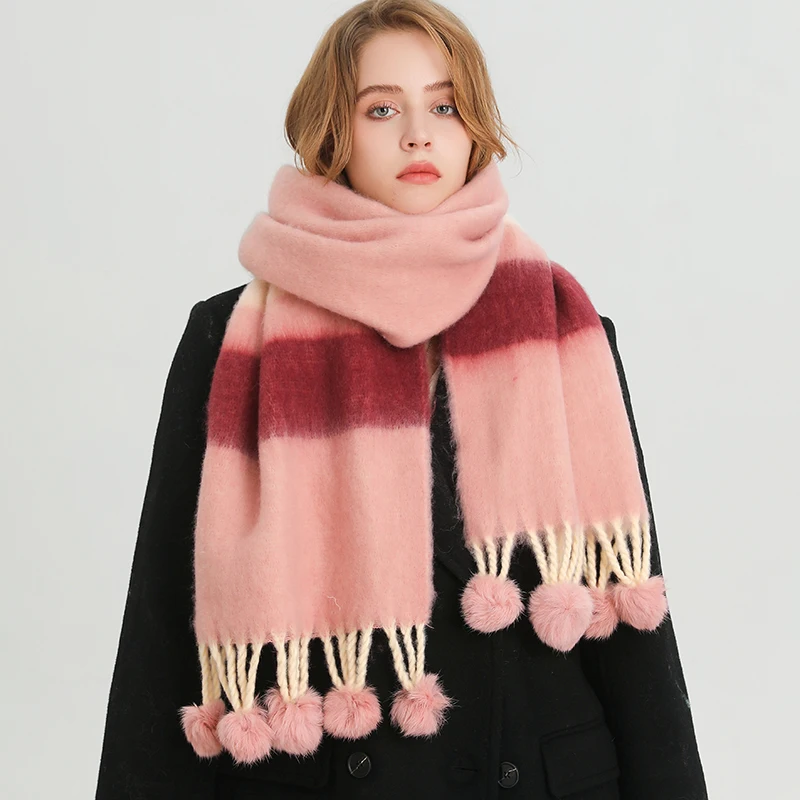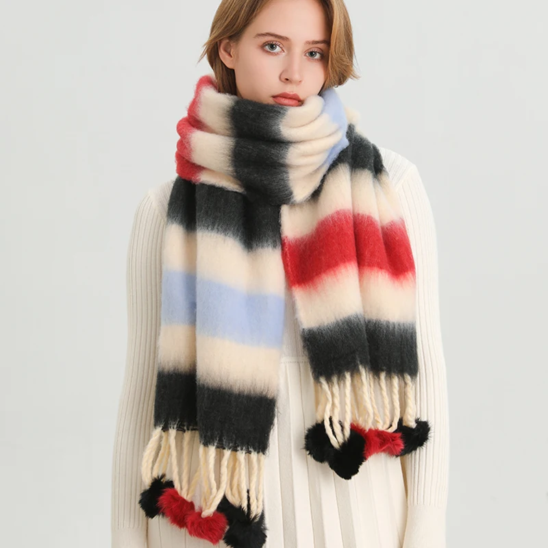 2024 Fashion Winter Design Multicolor Thick Warm Women Cashmere Like Looped Yarn Scarf Neck Shawls Tassel Pashmina Lady Men