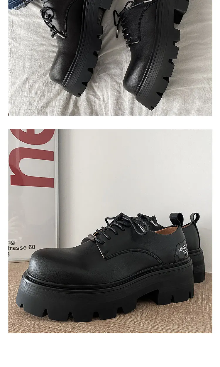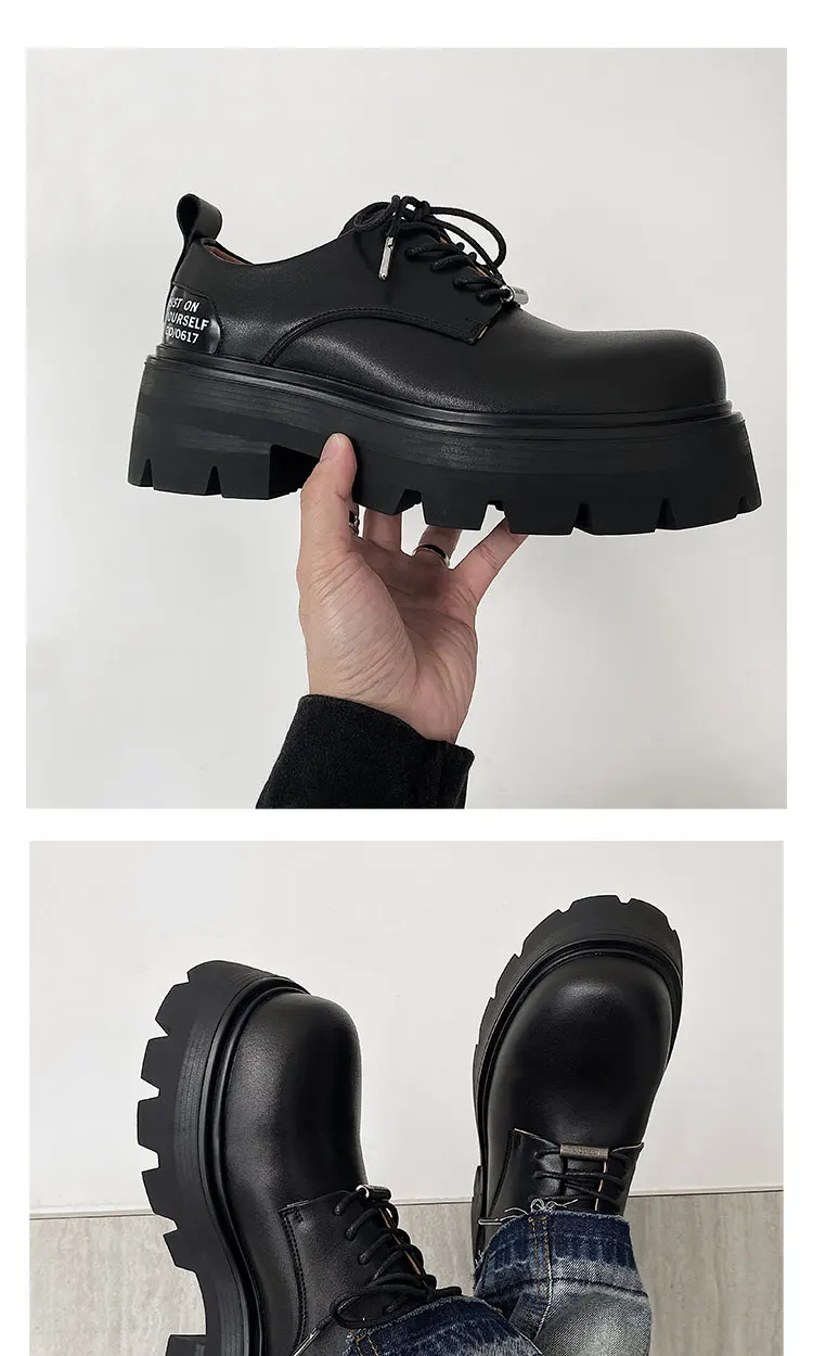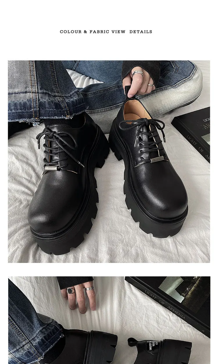 2024 Original and New Elevated 7CM Matsuke Sole Derby Shoes Black Big Head Leather Shoes for Men and Women's Universal Work Clot