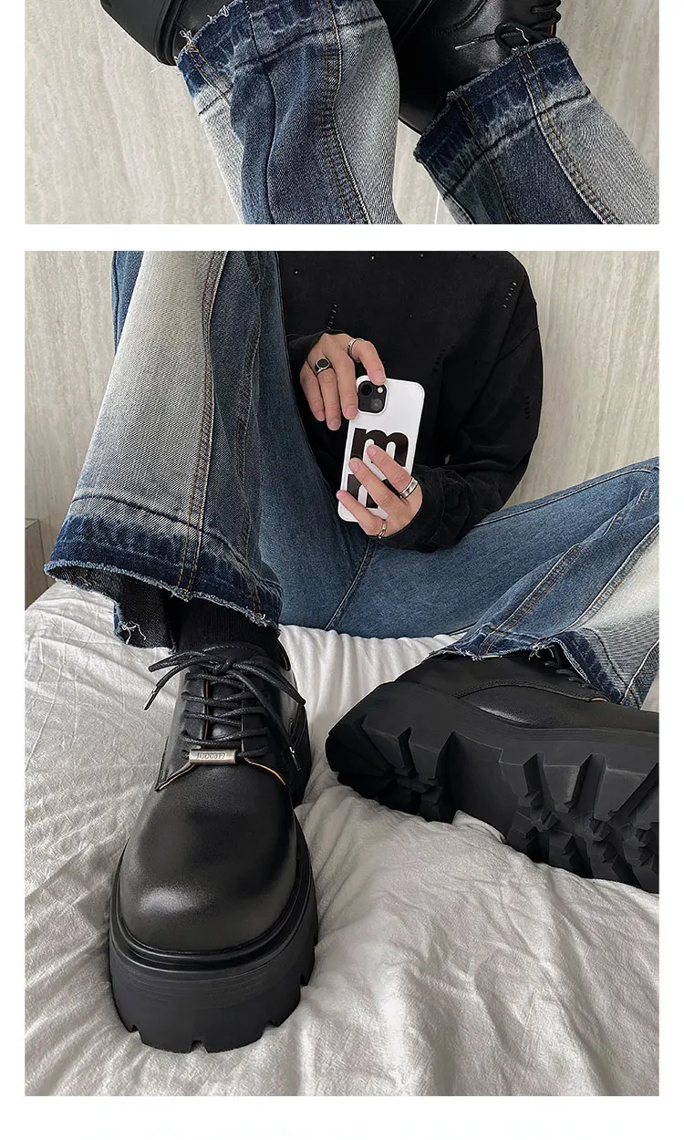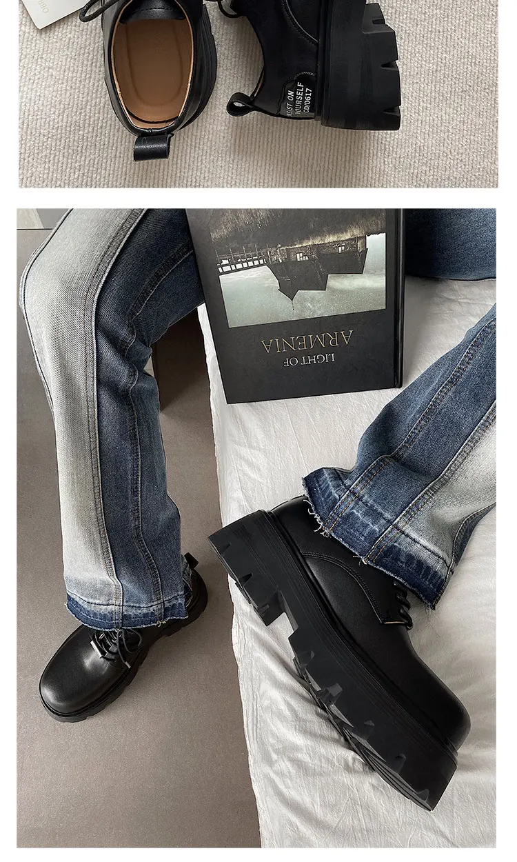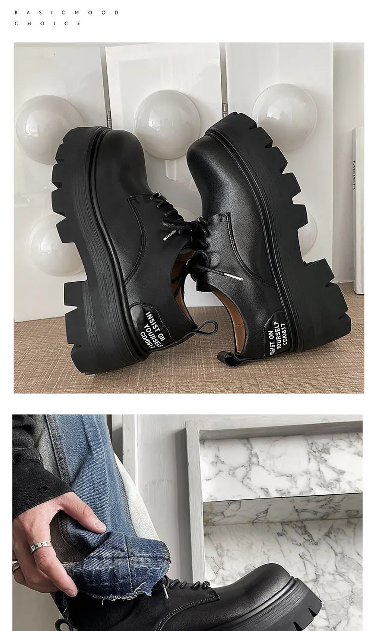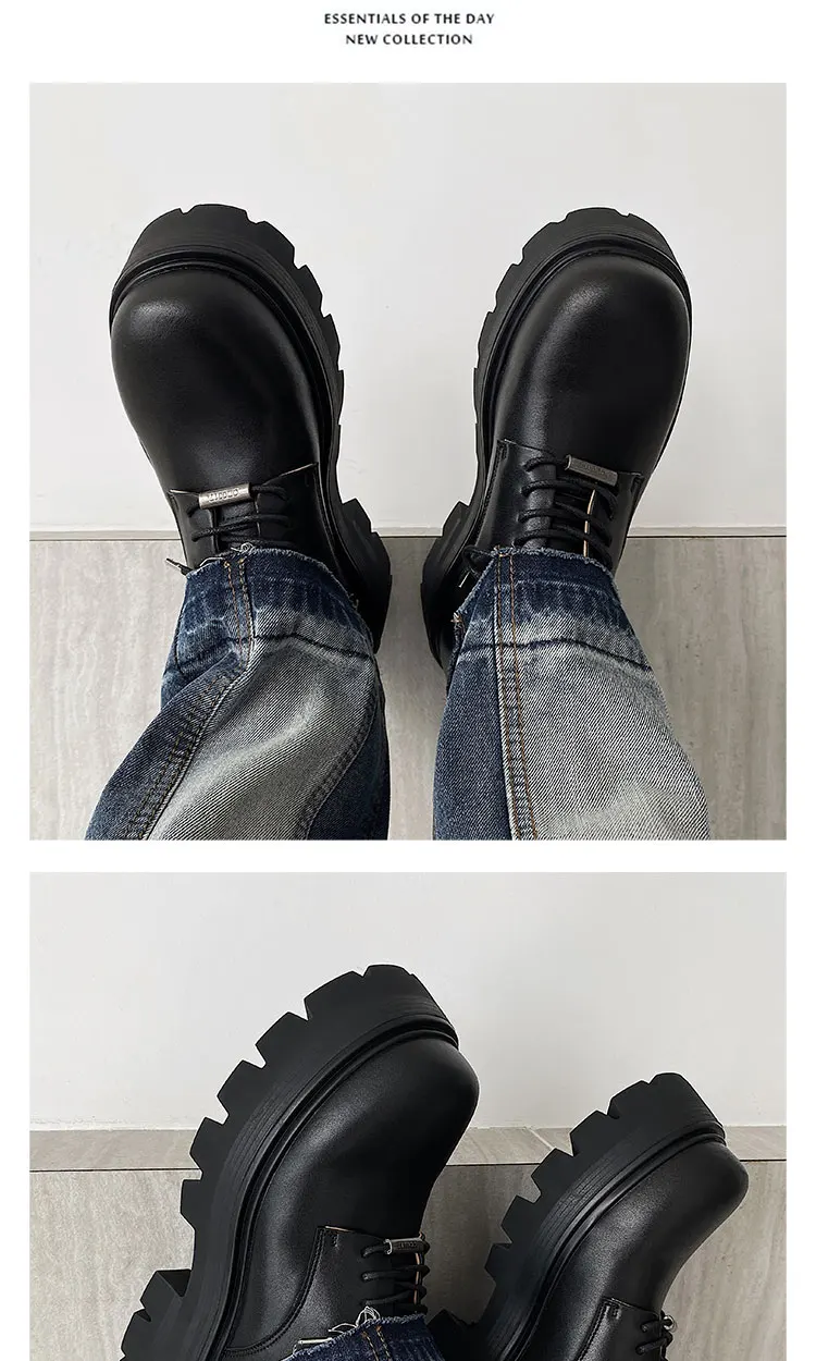 2024 Original and New Elevated 7CM Matsuke Sole Derby Shoes Black Big Head Leather Shoes for Men and Women's Universal Work Clot