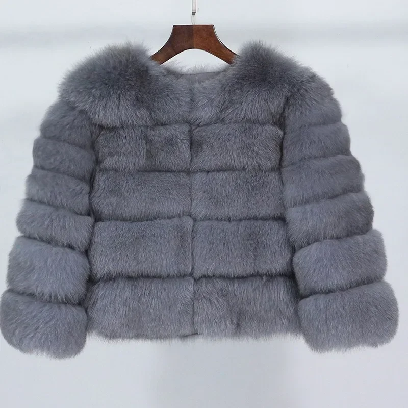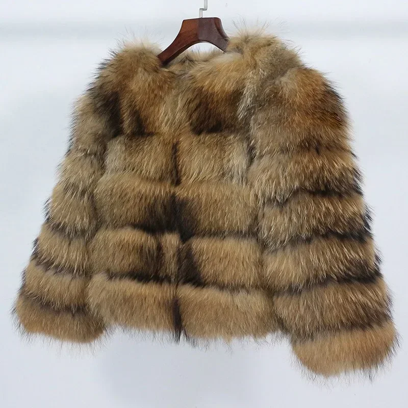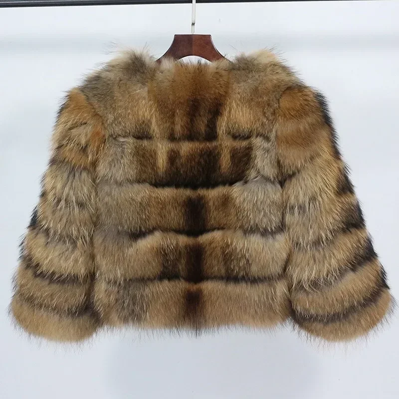 2024 Real Fox Fur Coat Winter Jacket Women Natural Fox Fur Raccoon Outerwear O-neck Thick Warm Luxury Female Plus Size