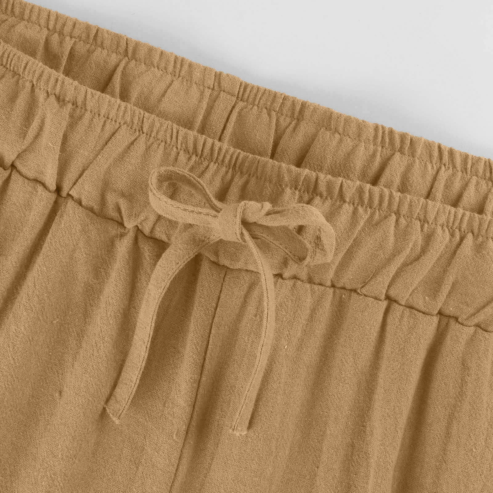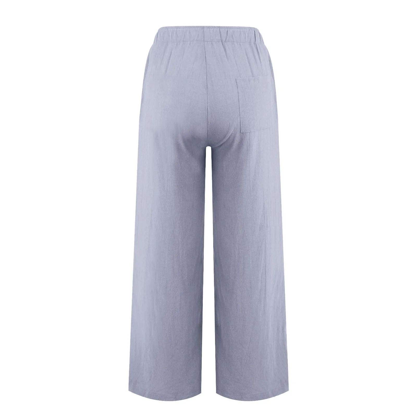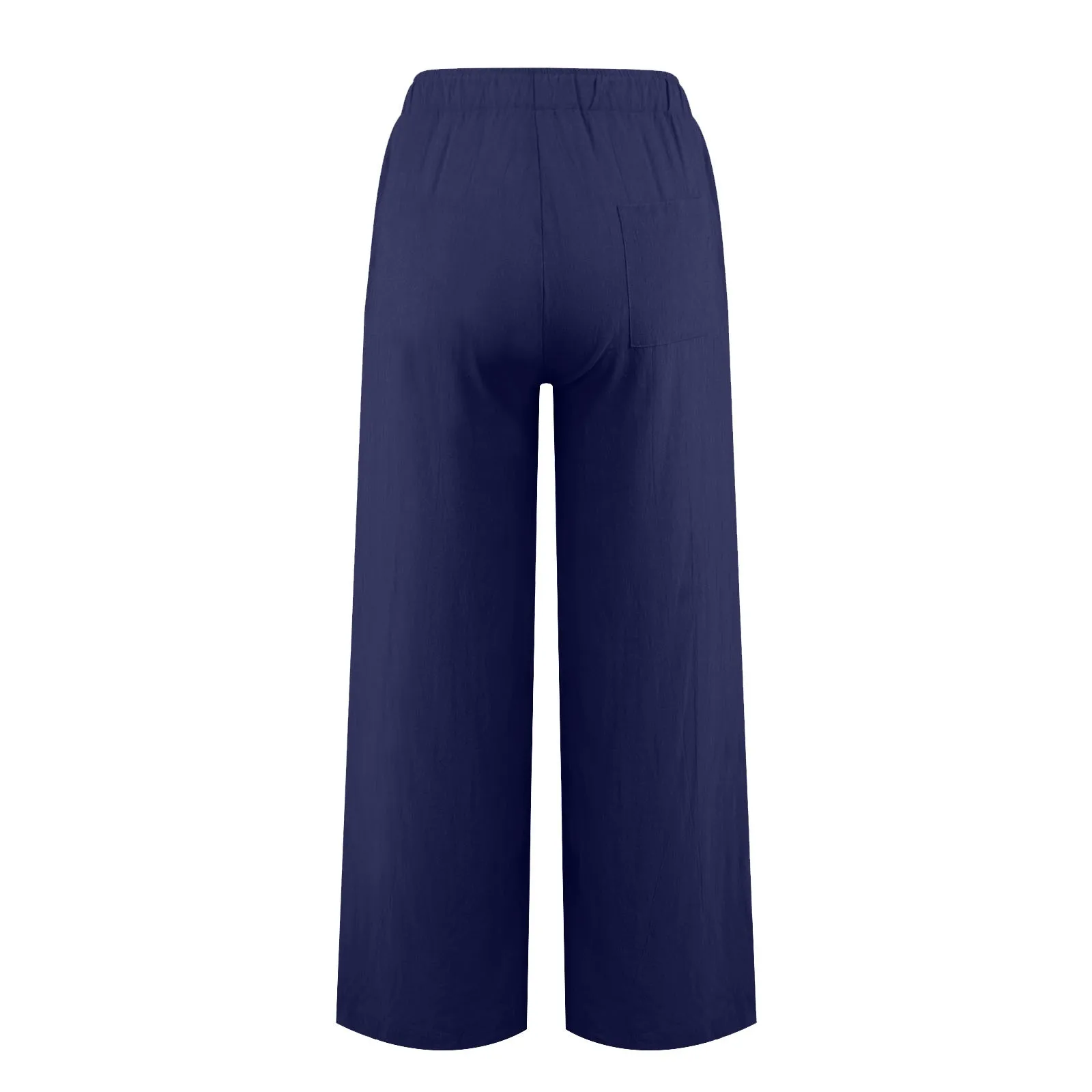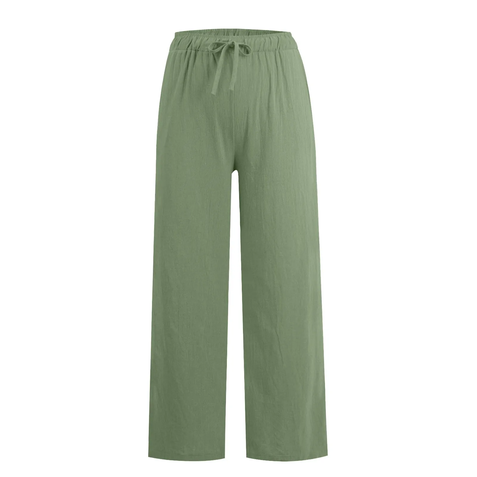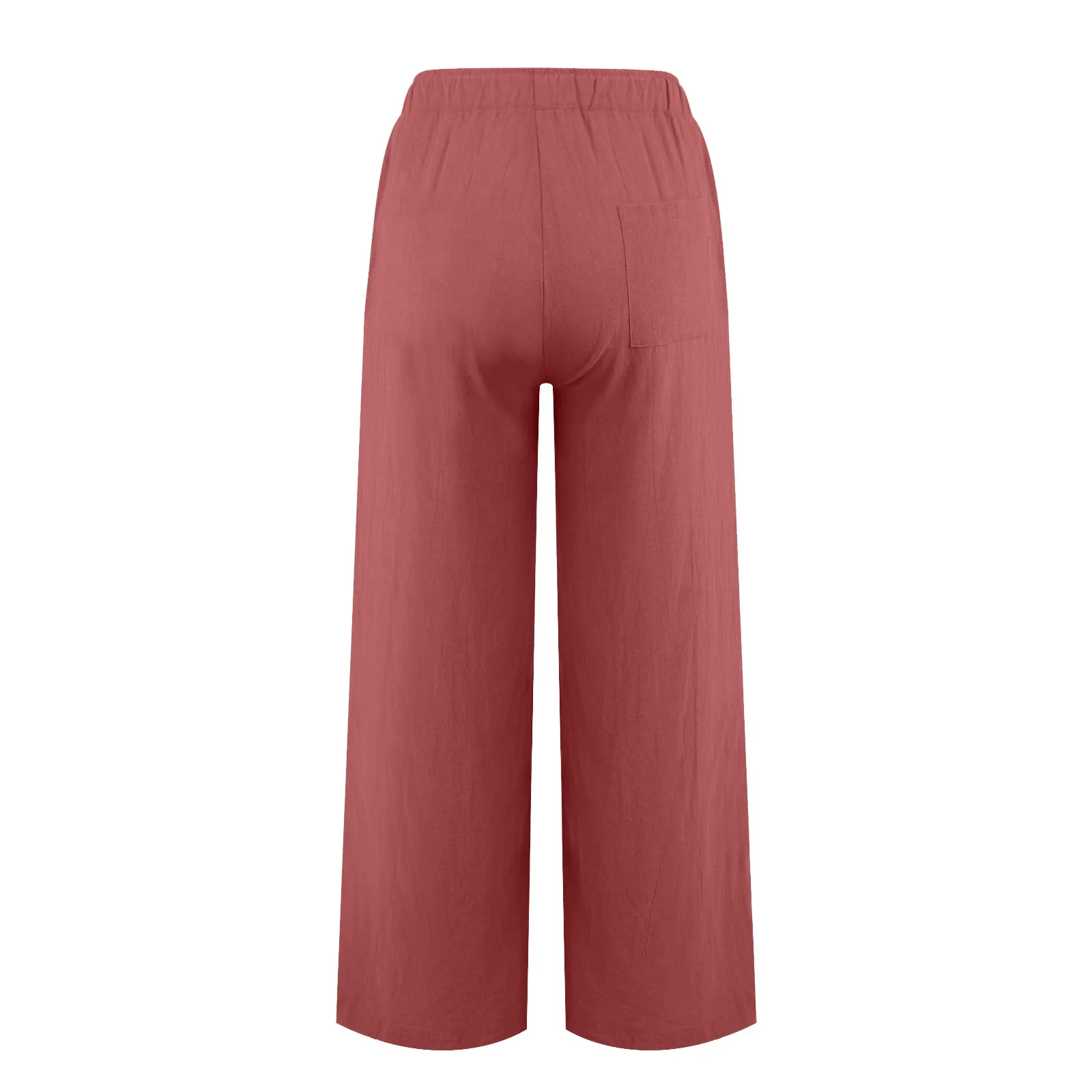 2024 Spring Summer Linen Cotton Wide Legged Pants for Women High Waist Solid Color Crop Pants Elastic Waist Casual Loose Pants