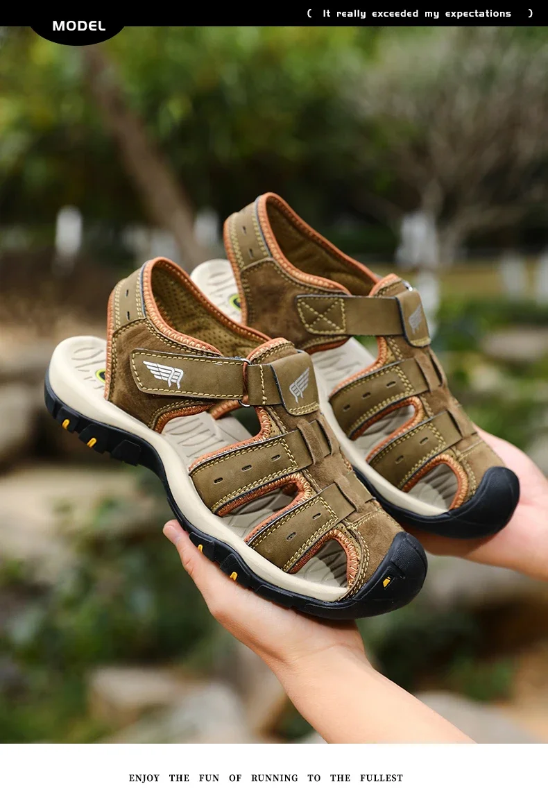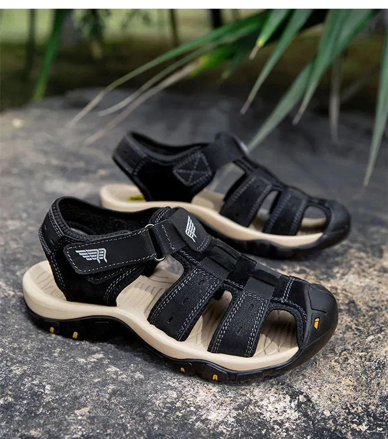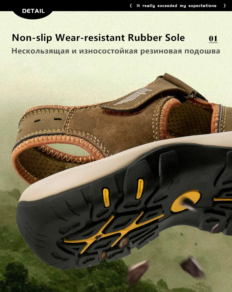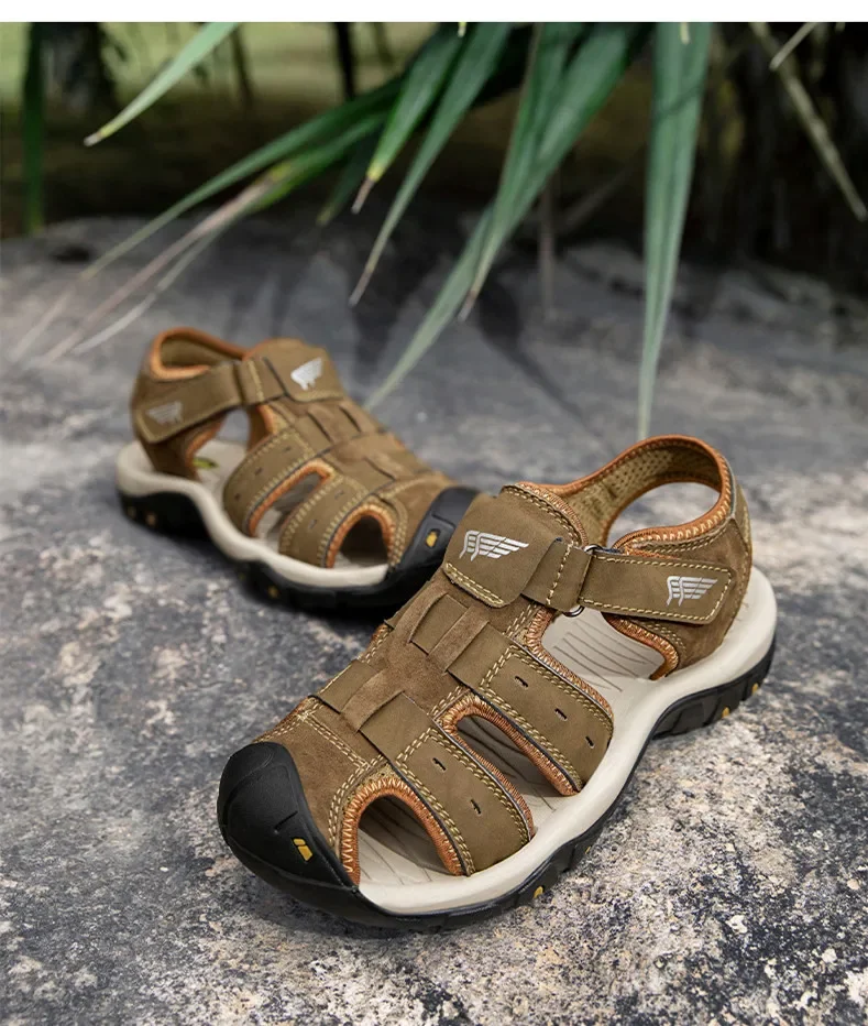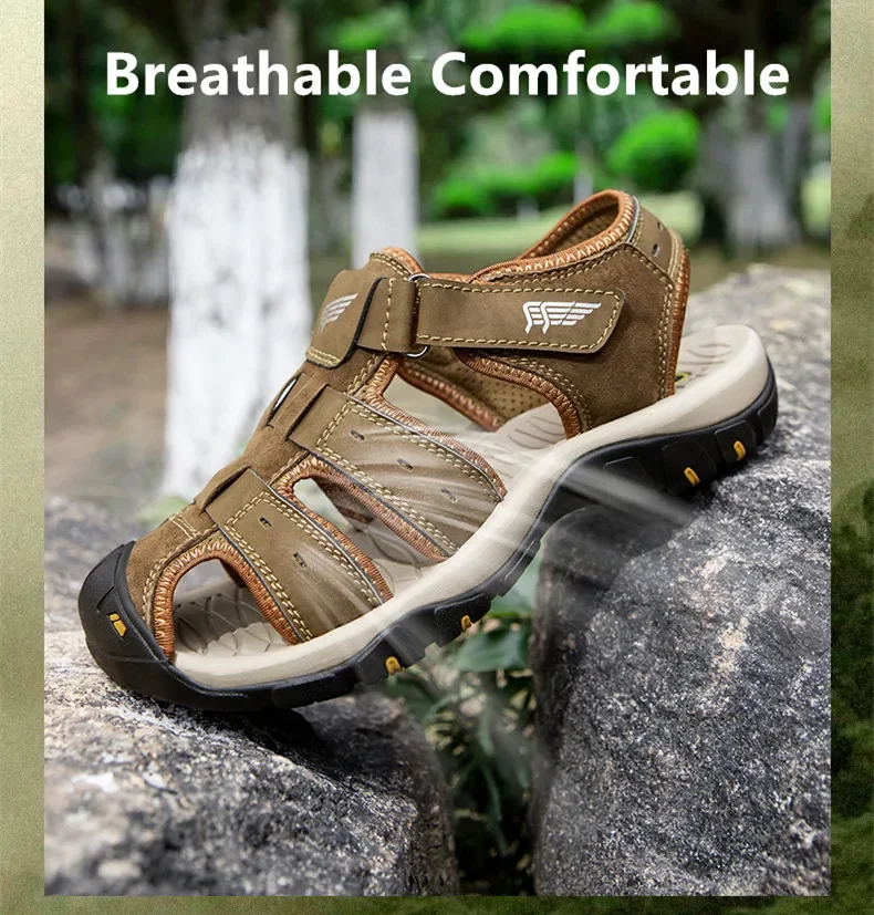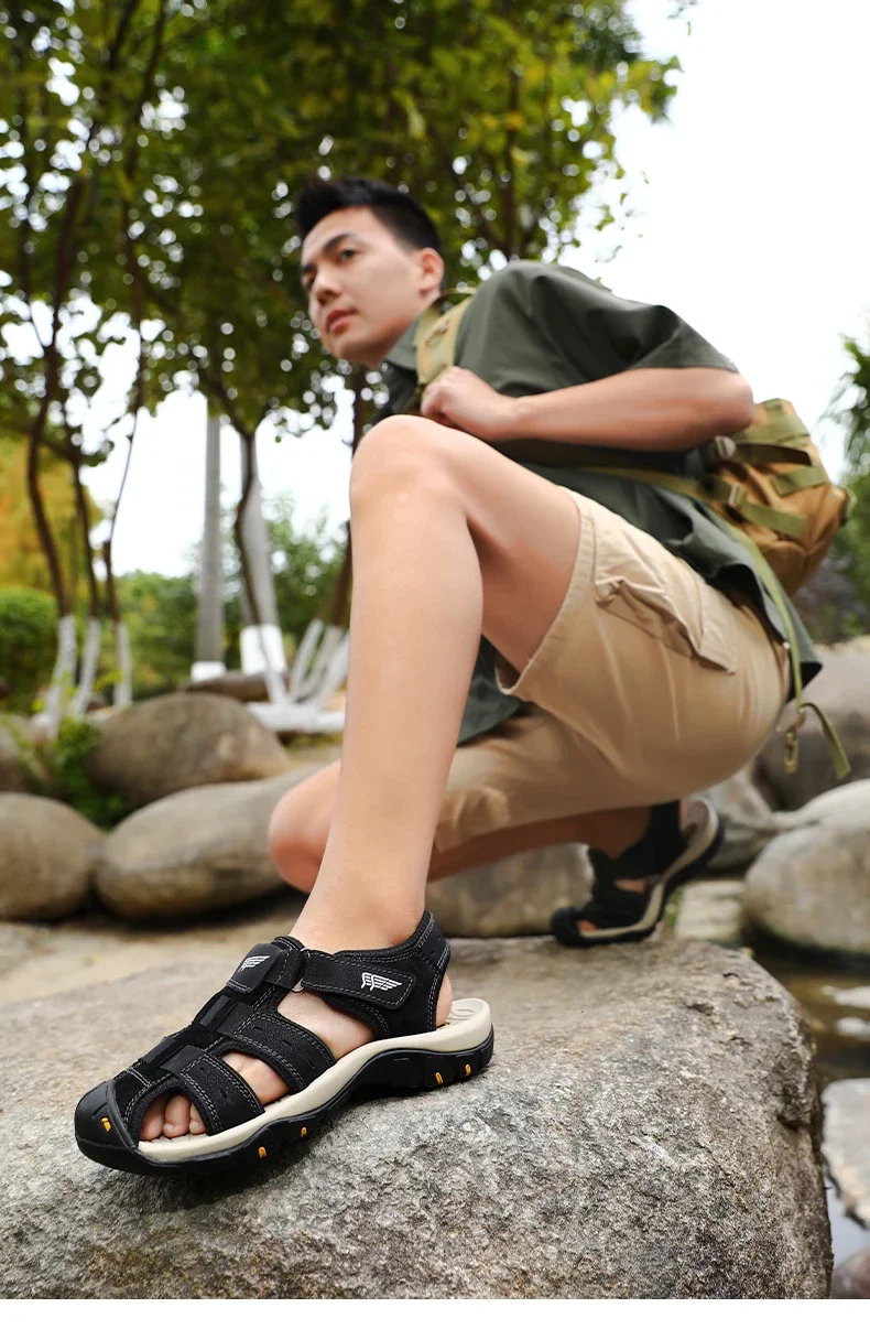 2025 New Fashion Men's Sandals Summer Soft Beach Sandals Comfortable Genuine Leather Men Sandals Outdoor Non-slip Wading Shoes