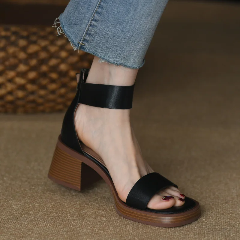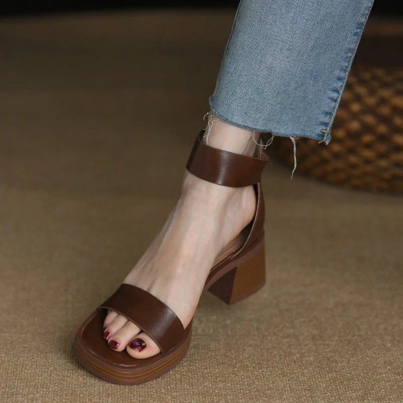 2025 sandalias de mujer Women Sandals Low Heels Basic Genuine Leather Office Ladies Casual Outdoor Shoes Woman Concise