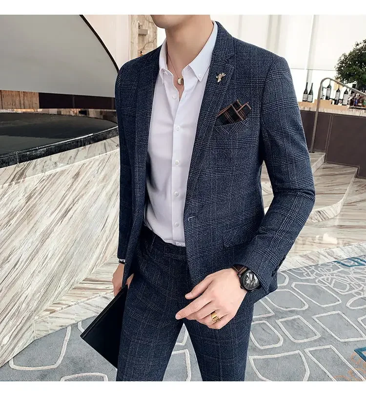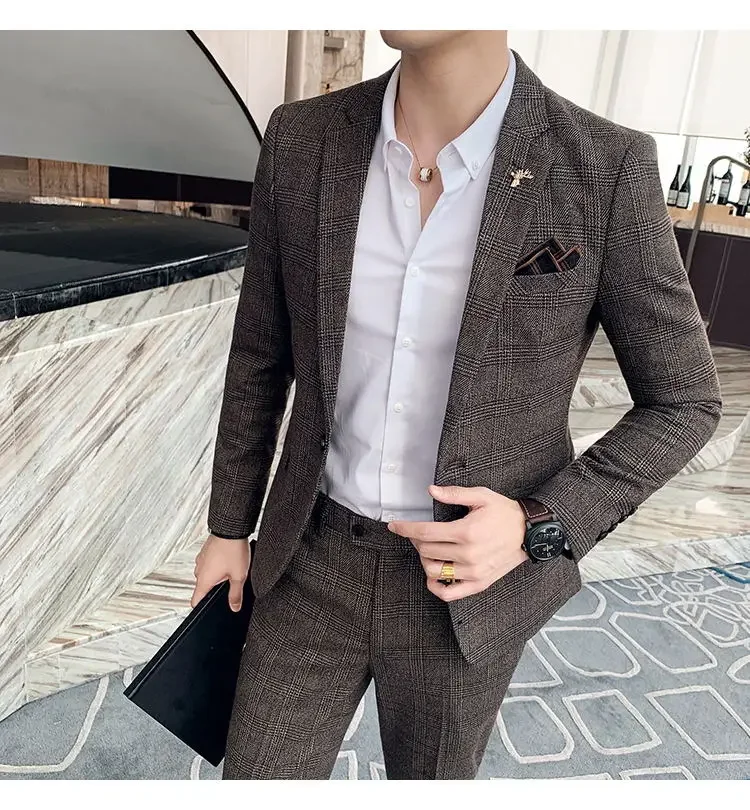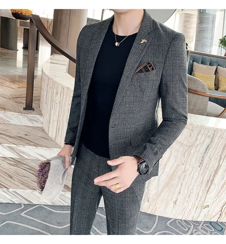 2025 Suit (Blazer+ Pants) Men's Fashion Hosts British Style Work Business Wedding Casual Art Style Elegant Gentleman Suit M-5XL