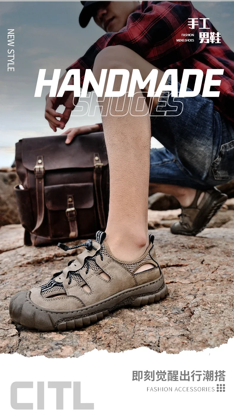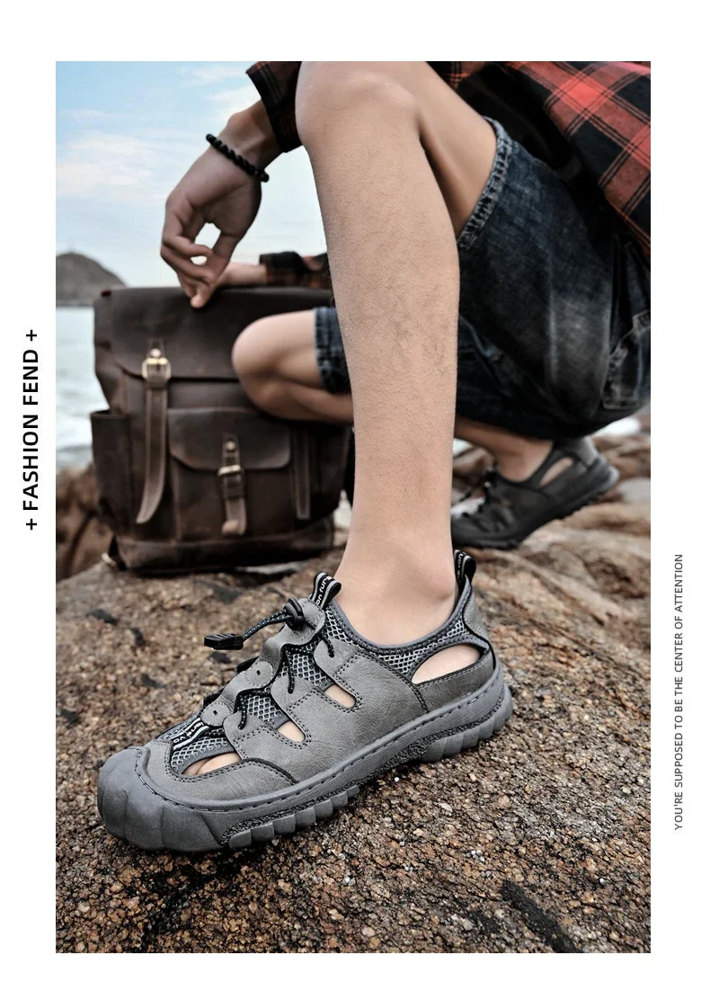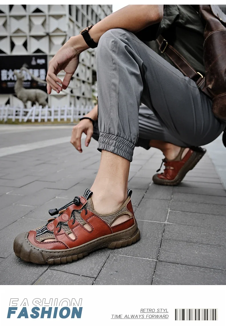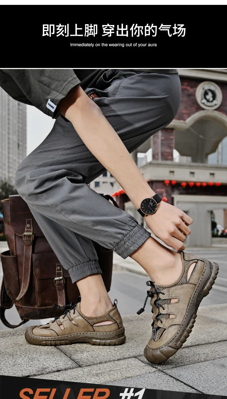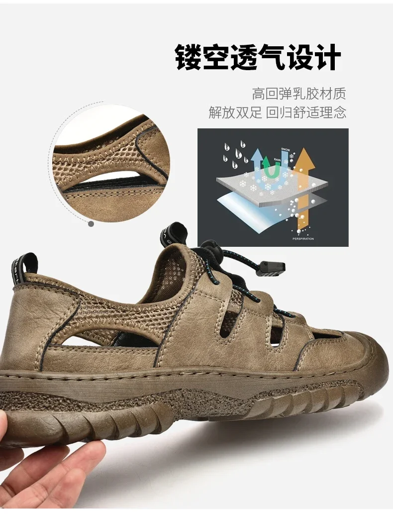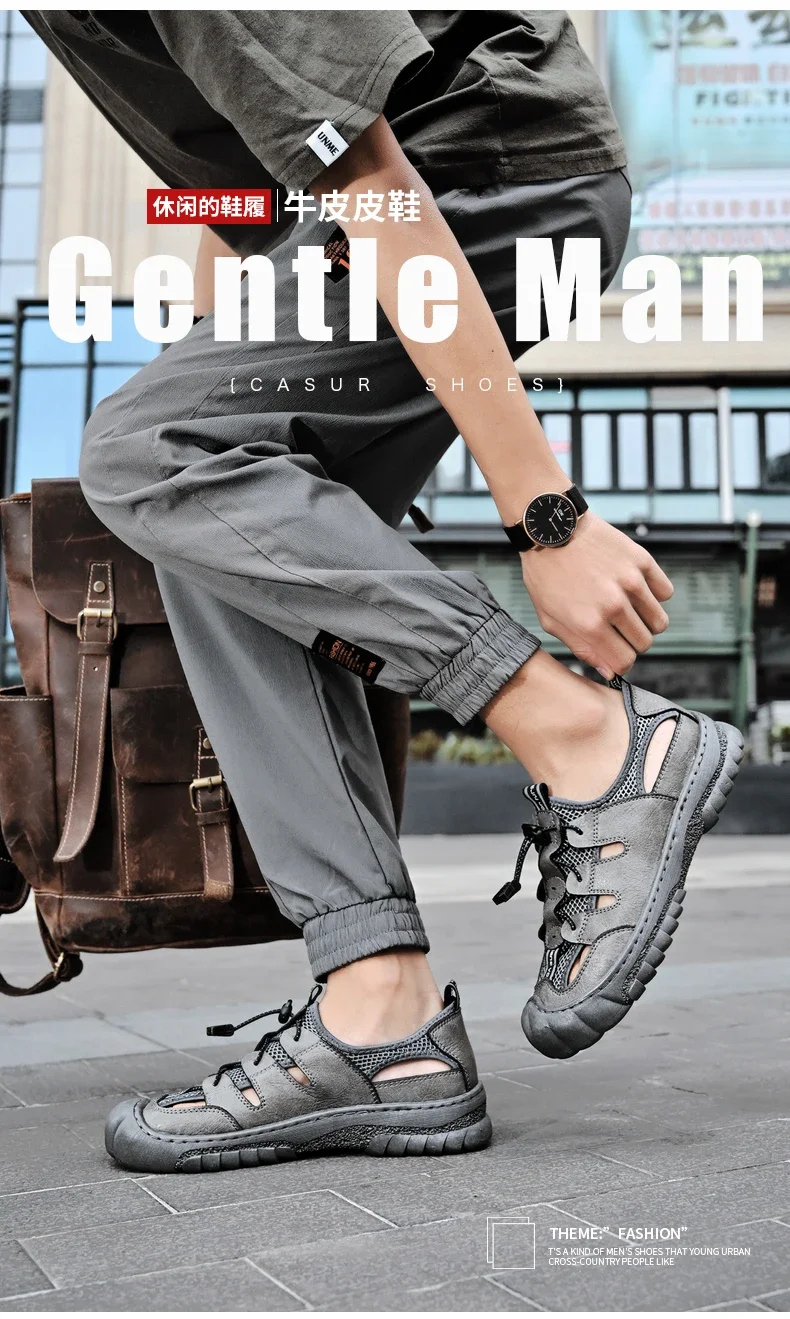 2025 Summer Men Sandals Genuine Leather Mens Casual Shoes Outdoor Men Leather Sandals for Men Beach Shoes Roman mens Shoes