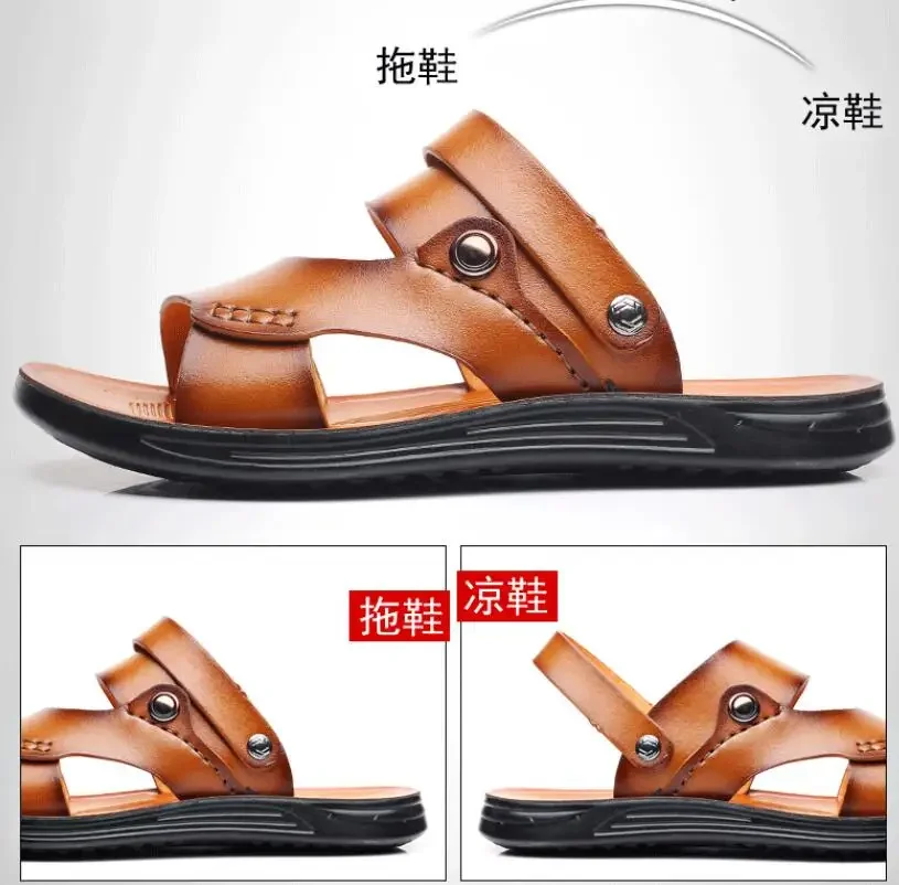 2025 Summer New Shoes for Men Fashion Genuine Leather Sandals Cow Leather Casual Slipper Man Cool Beach Shoes