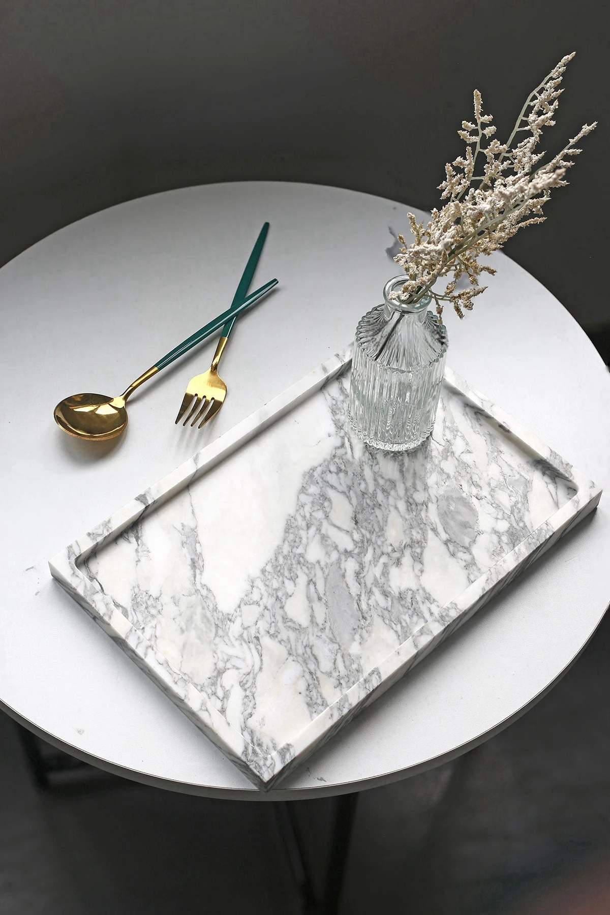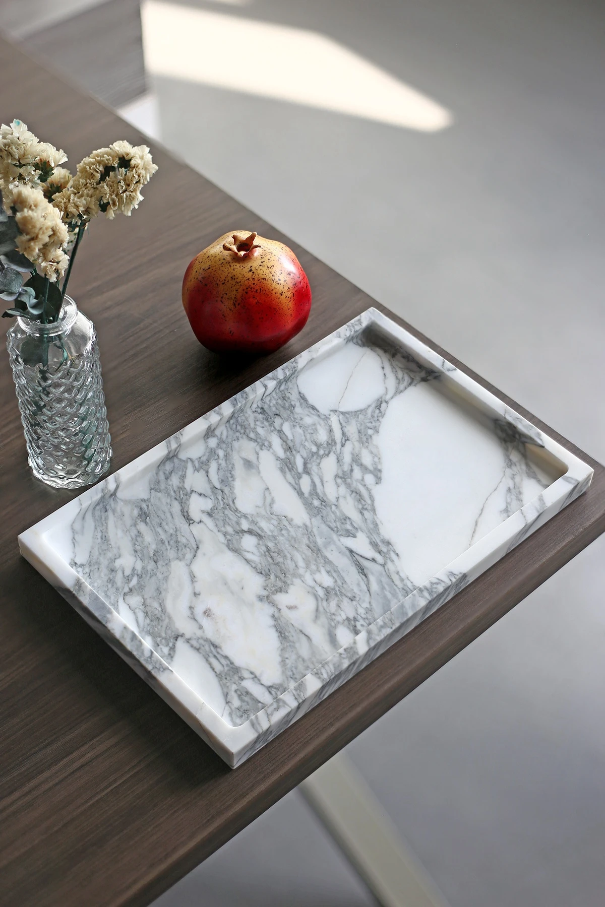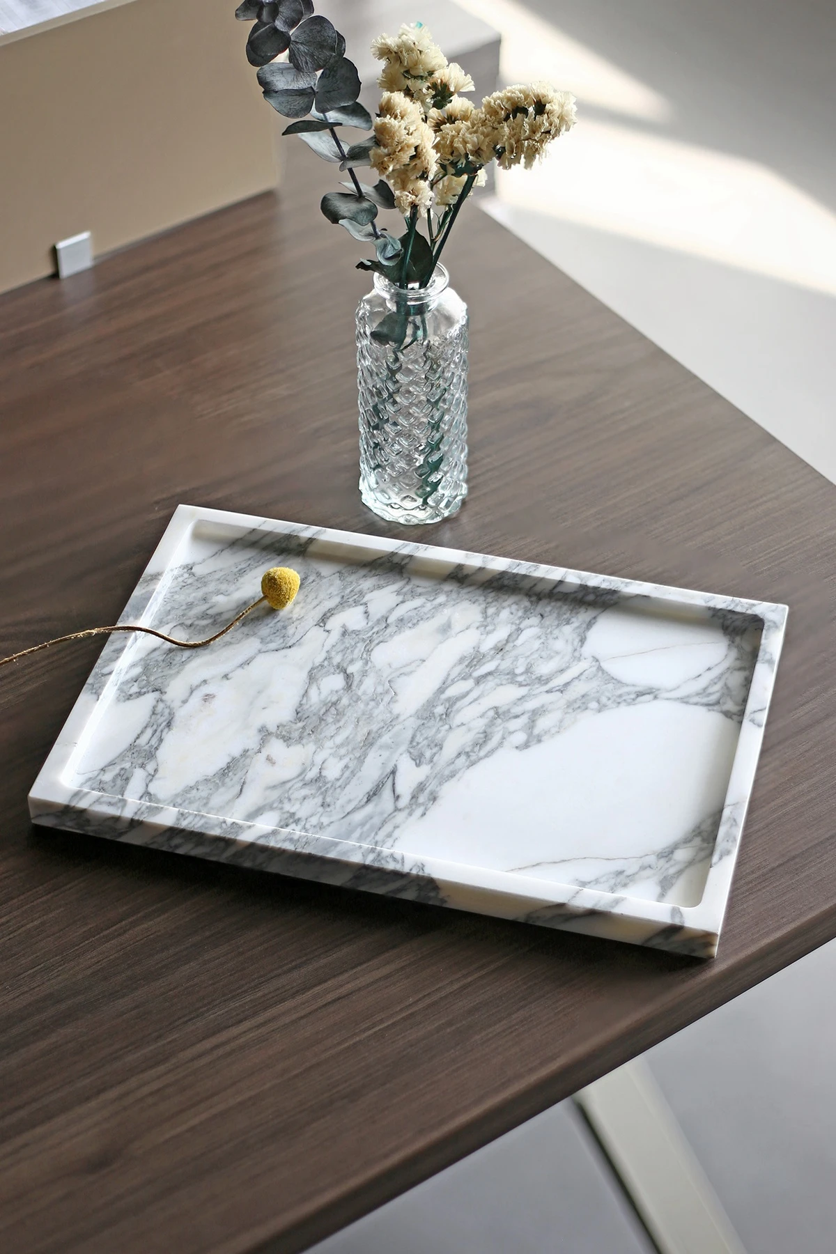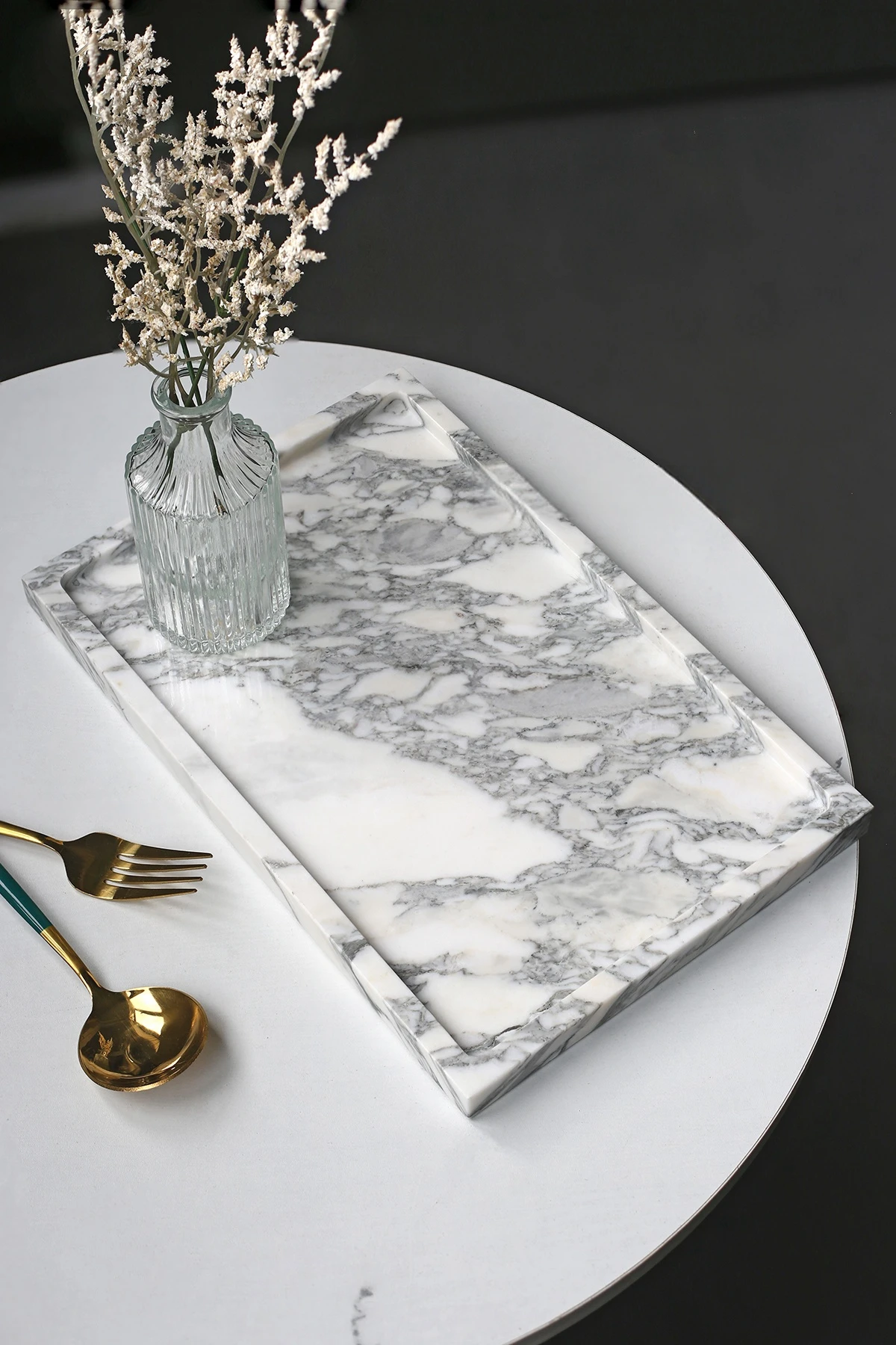 30x20x1.8CM Luxury Calacatta Viola Arabescato Natural Marble Stone Catchall Tray Carving Rectangular Storage Dish Home Decor