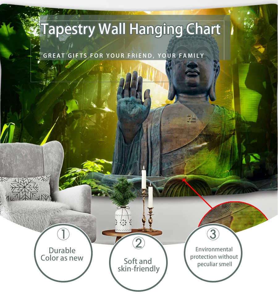 3DReligion Culture Hanging Wall Tapestry Buddha Wall Carpet Headboard Dorm Hippie Psychedelic Tapestry Tree Landscape Boho Decor