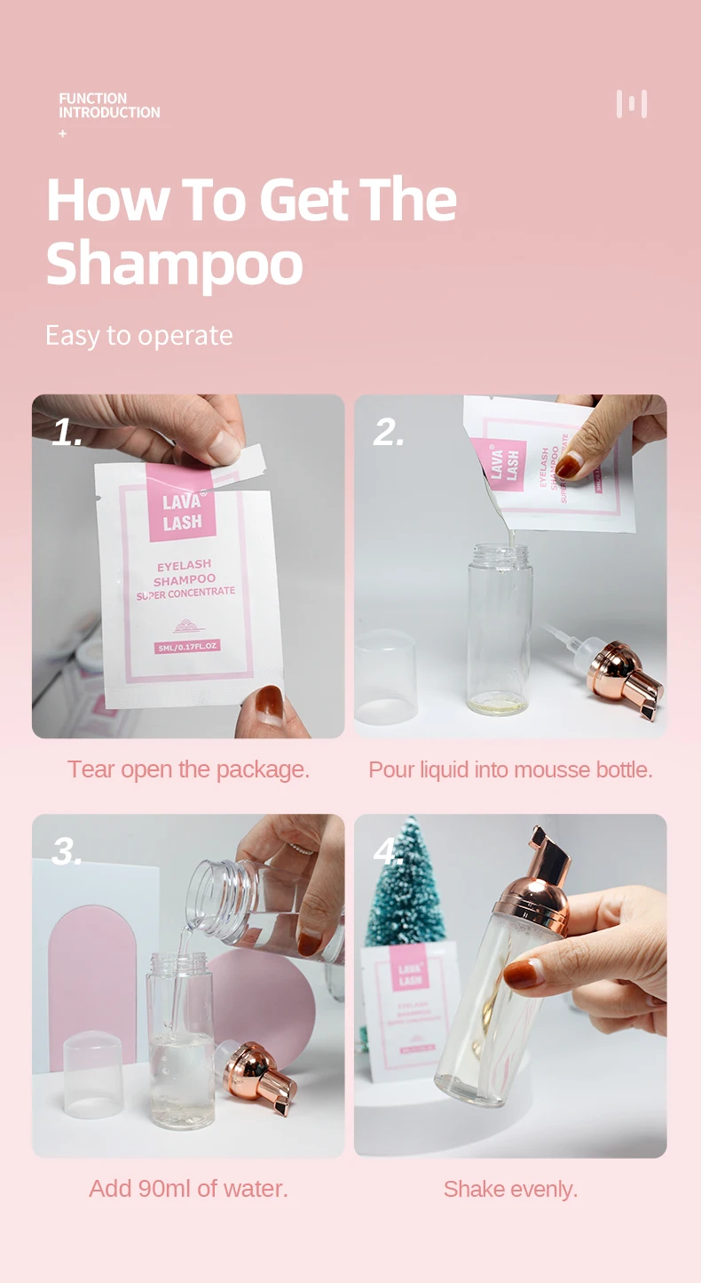 5ml Eyelash Extension Shampoo Eyelid Foaming Cleanser,Wash for Extensions and Natural Lashes,Mascara Remover