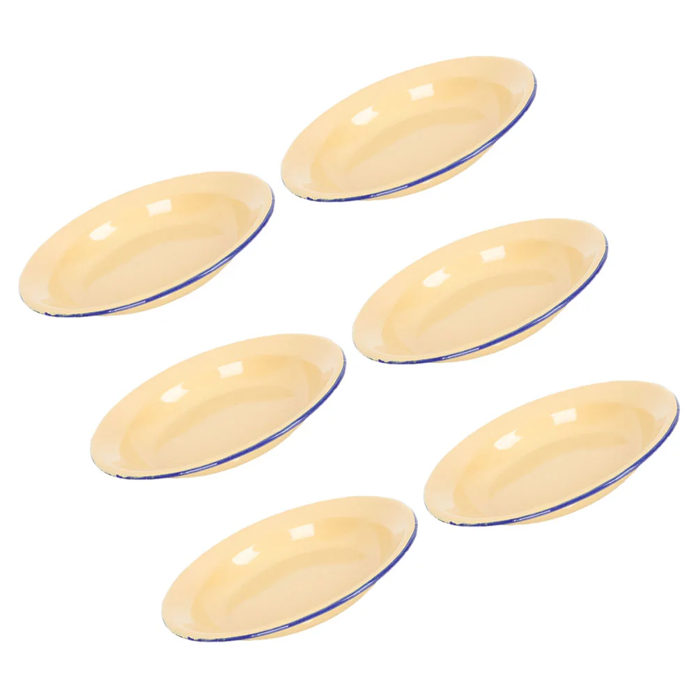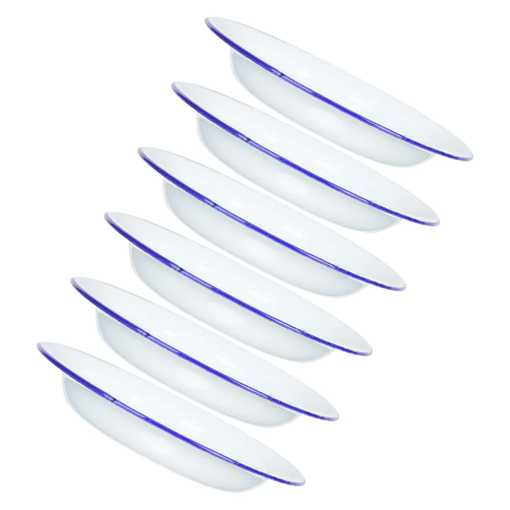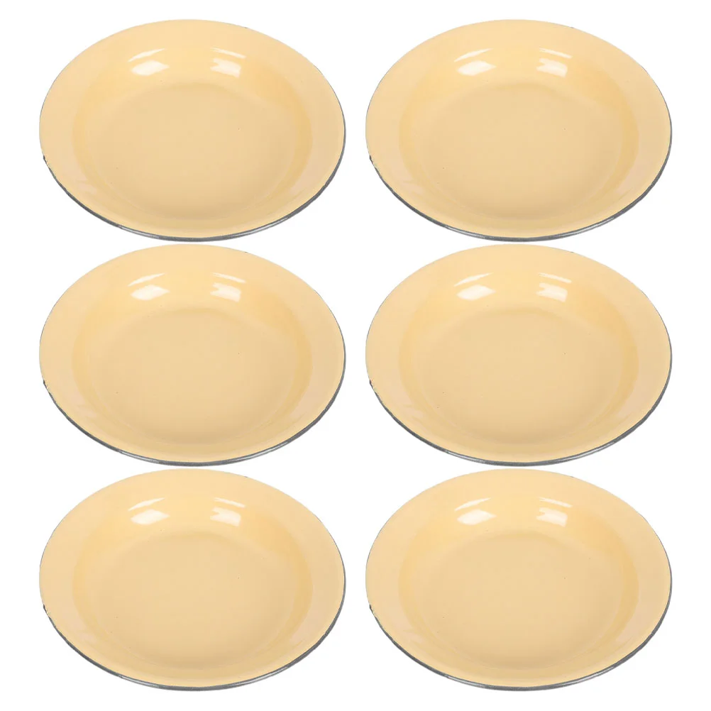 6 Pcs Enamel Plate Set Vintage Dinner Plates Camping Dishes Enamelware Fruit Platter Salad Bowl Dinner Plate Set Kitchenware