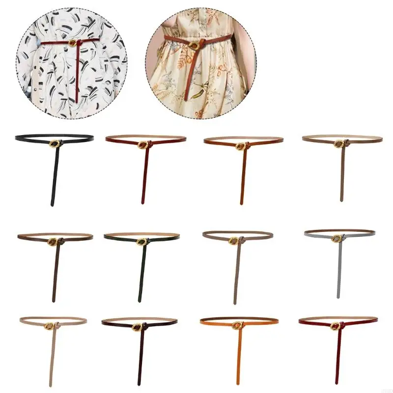 652F Selfknotted Thin Belt Aesthetic Leather Belt Waistband Decorative Skinny Belt for Shirt Dress Elegant Office Formal Belt