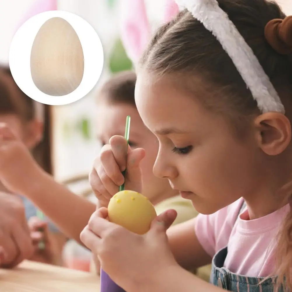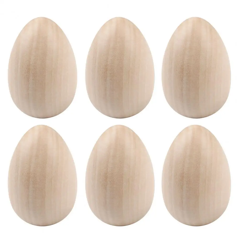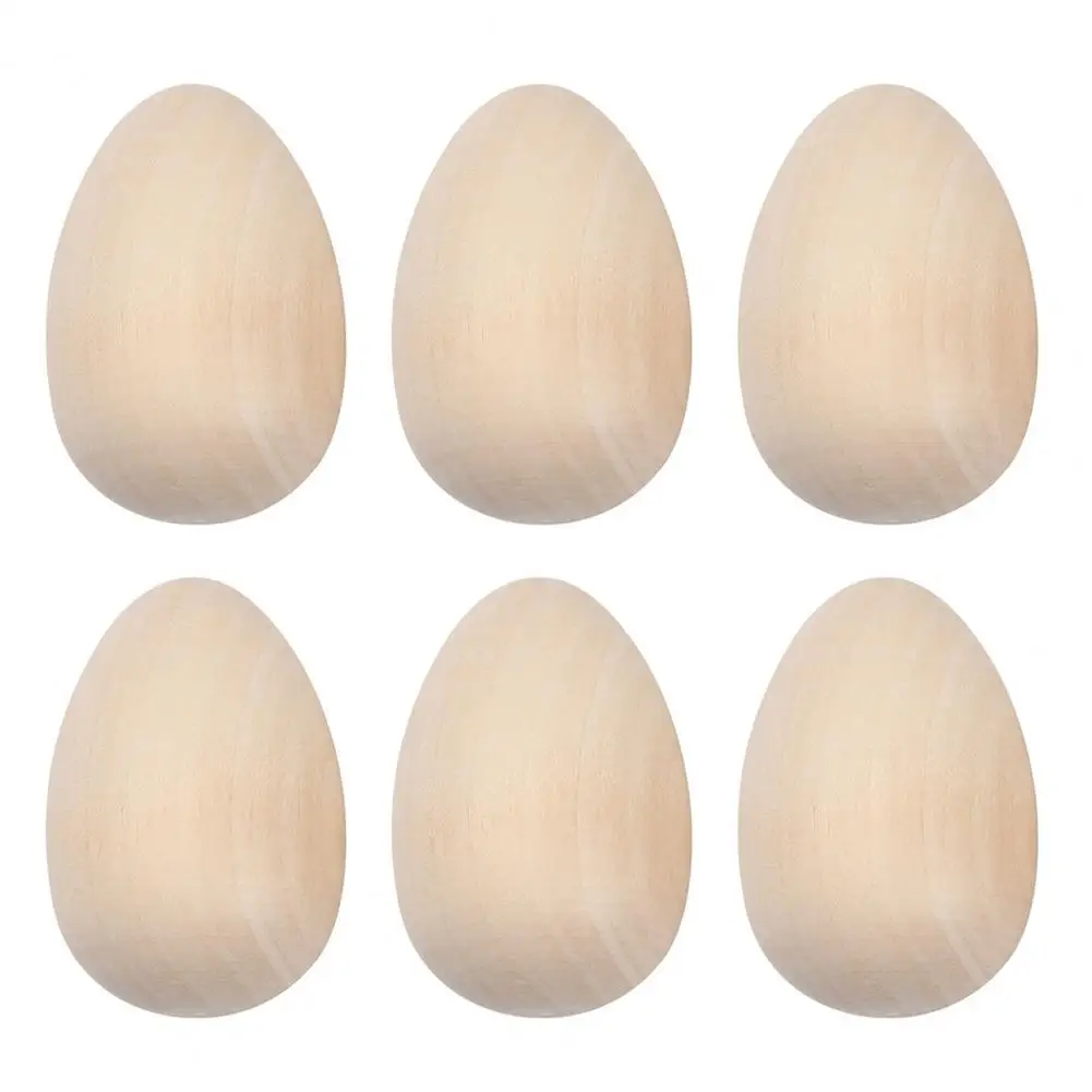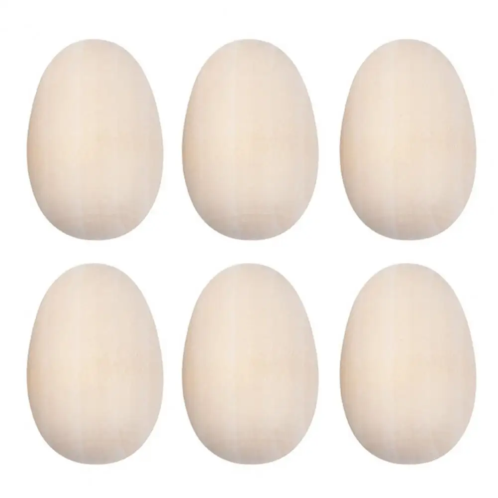 6Pcs Wooden Egg Lightweight Creative DIY Graffiti Painted Wooden Simulated Eggs Durable Natural Wood Eggs For Holiday