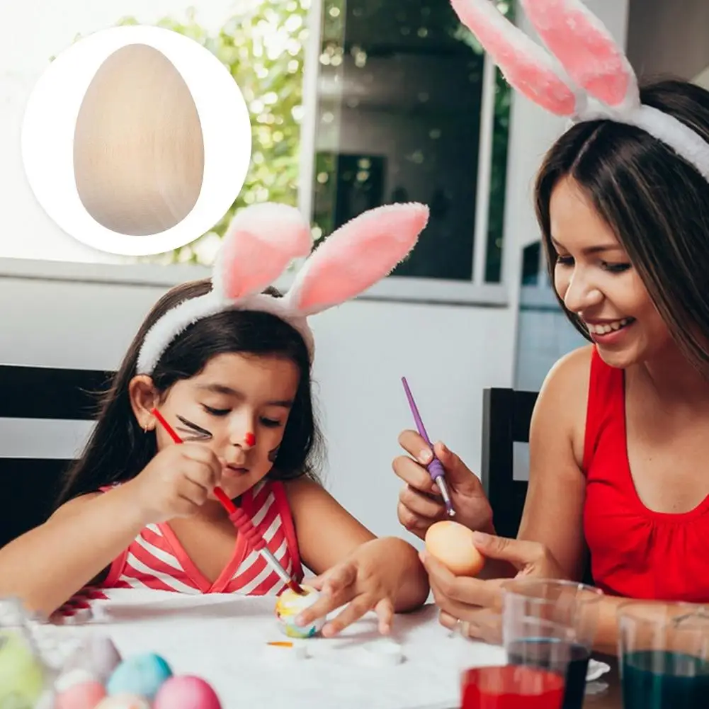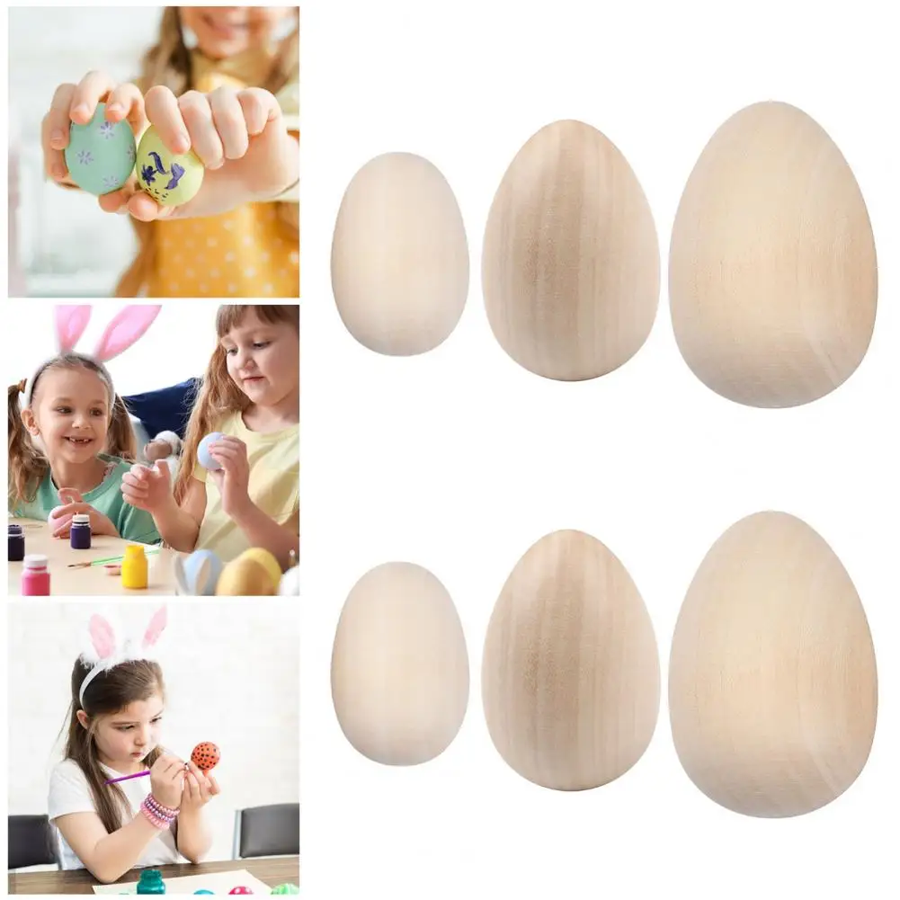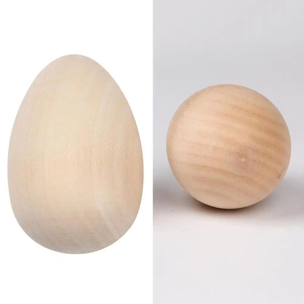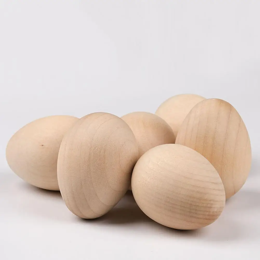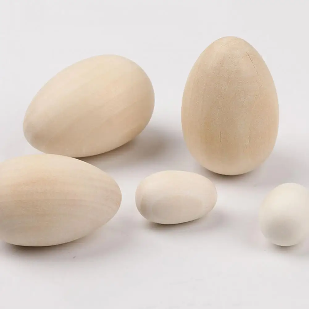 6Pcs Wooden Egg Lightweight Creative DIY Graffiti Painted Wooden Simulated Eggs Durable Natural Wood Eggs For Holiday