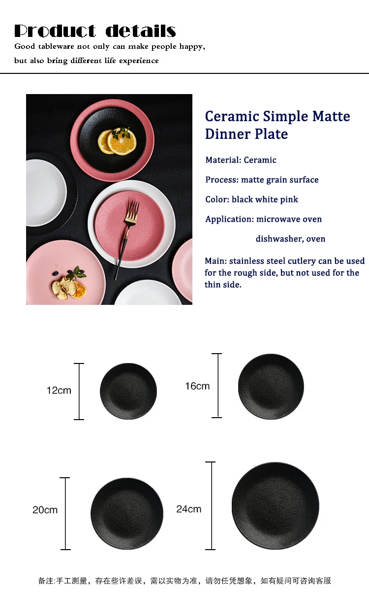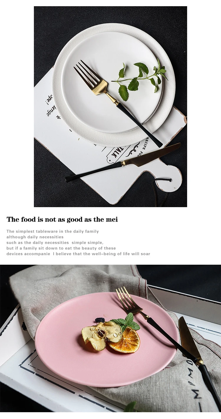 9.5inch Macaron Steak Plate Pink Ceramic Western Plate Creative Dessert Plate Japanese Thick Noodle Main Dish Plate