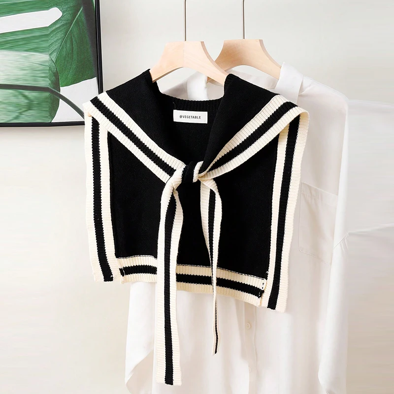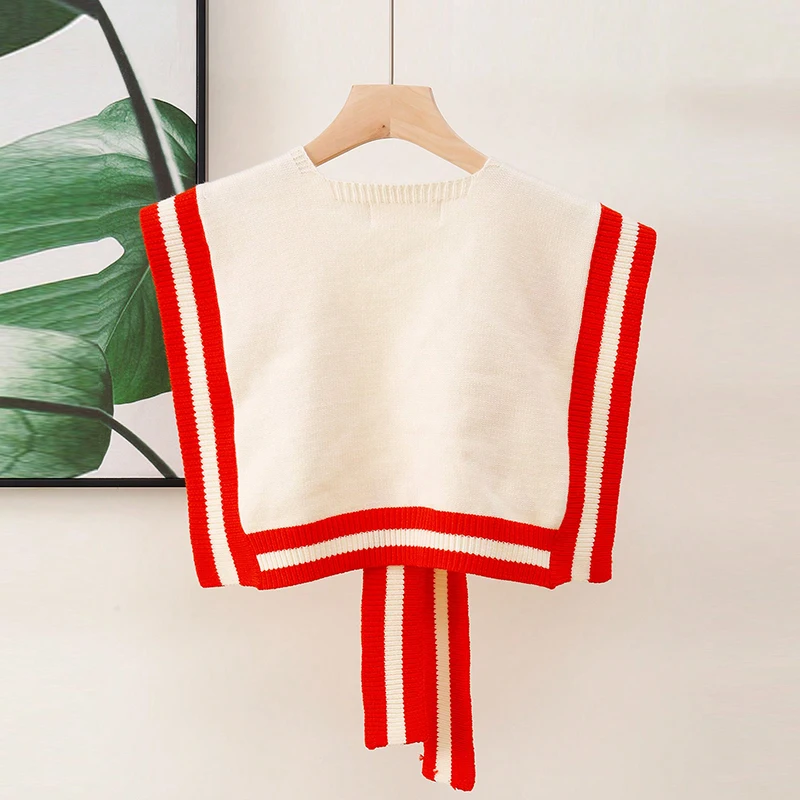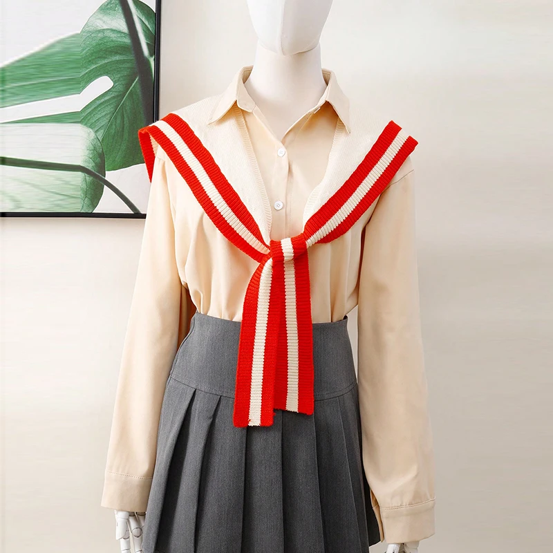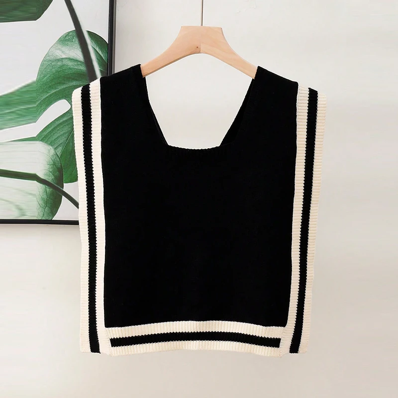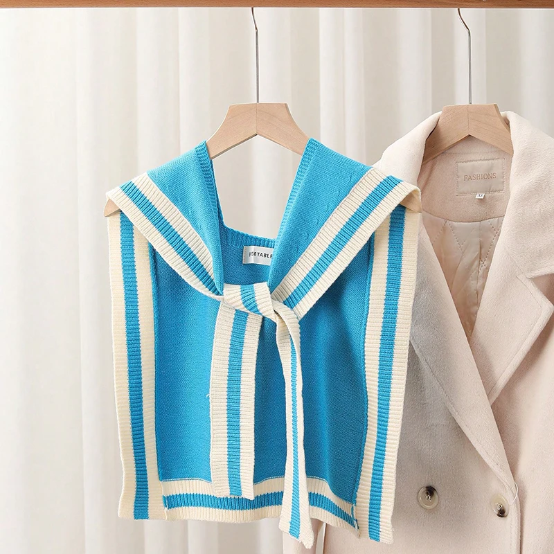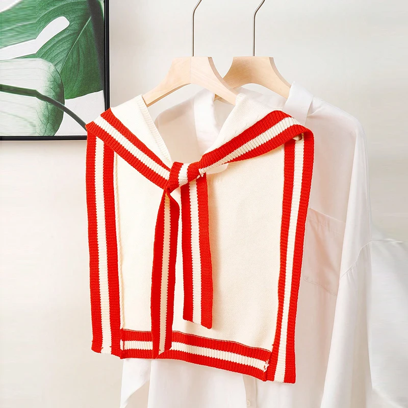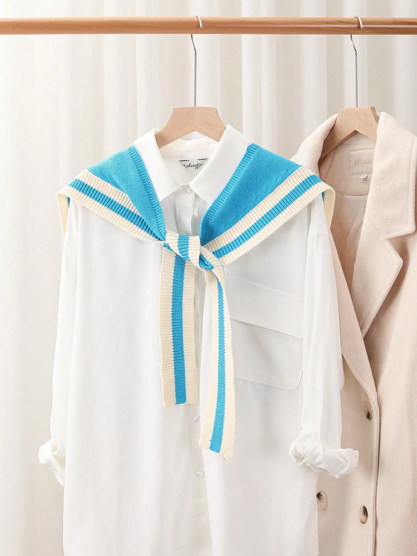 A Handmade Spring & Fall Polyester Knitted Knotted Shawl with Contrasting Stripes and Preppy Style Women's Fashion Shawl