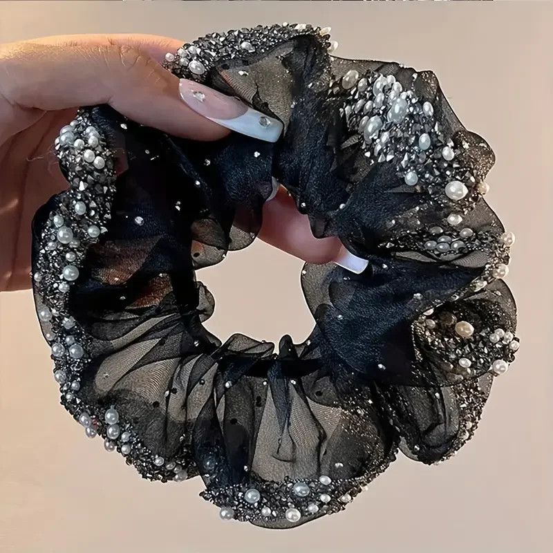 An elegant pearl and amphibole decorated mesh headband, women's fashionable headband, charming hair accessory