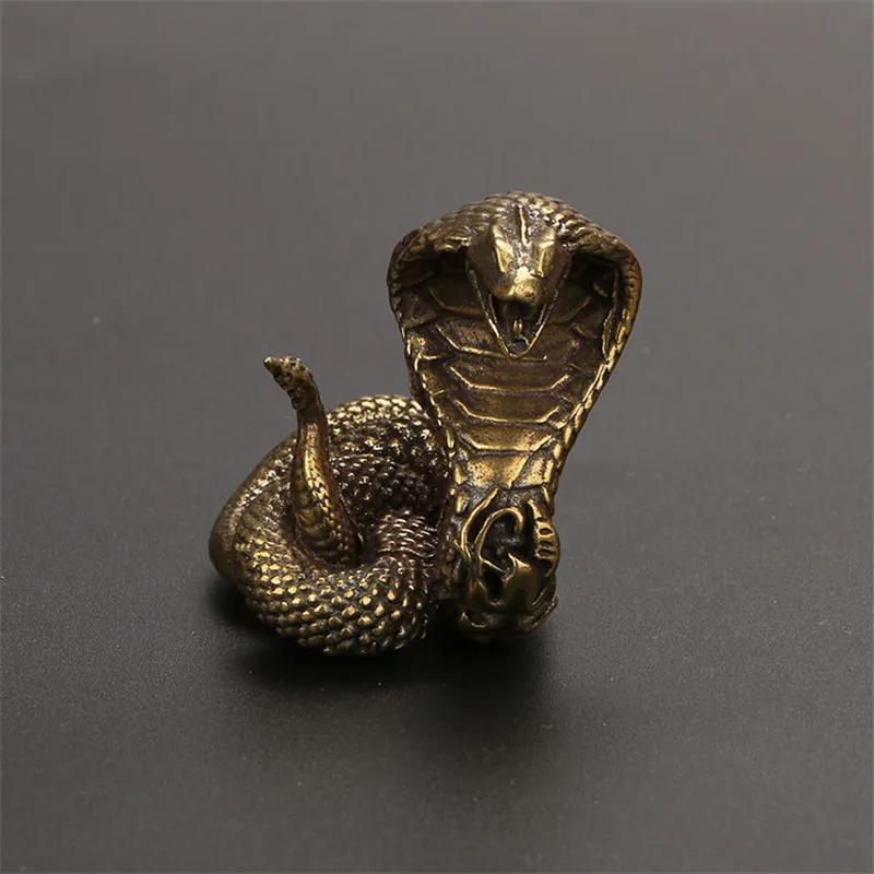 Antique Bronze Cobra Statue Ornament Zodiac Snake Miniature Figurines Copper Desktop Decoration Tea Pets Decor Accessories