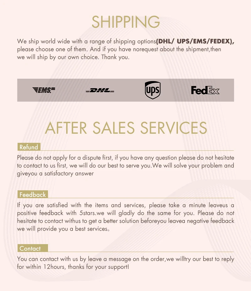 Free DHL shipping: When your order up to 180$