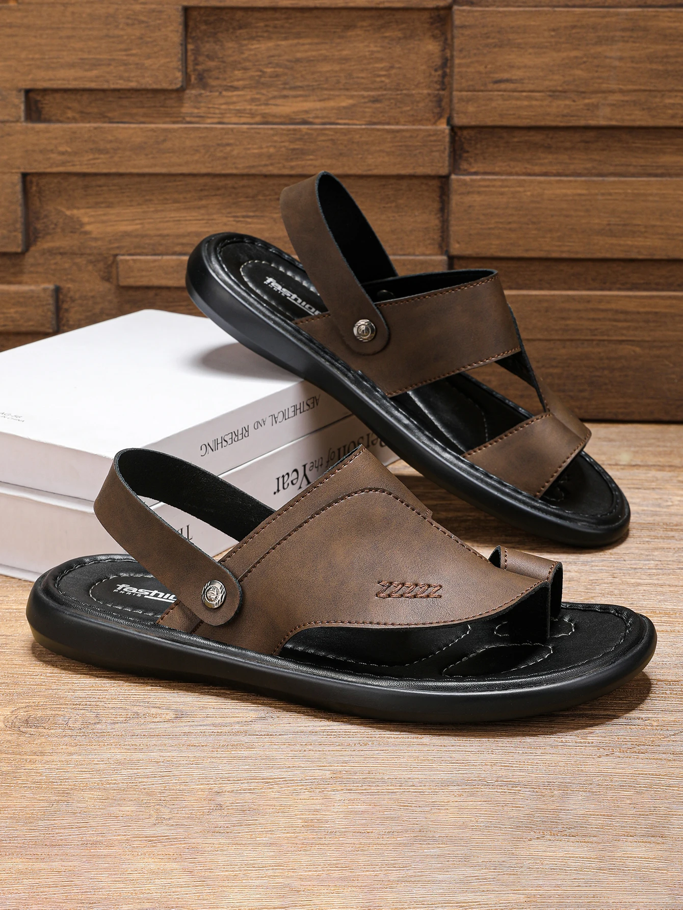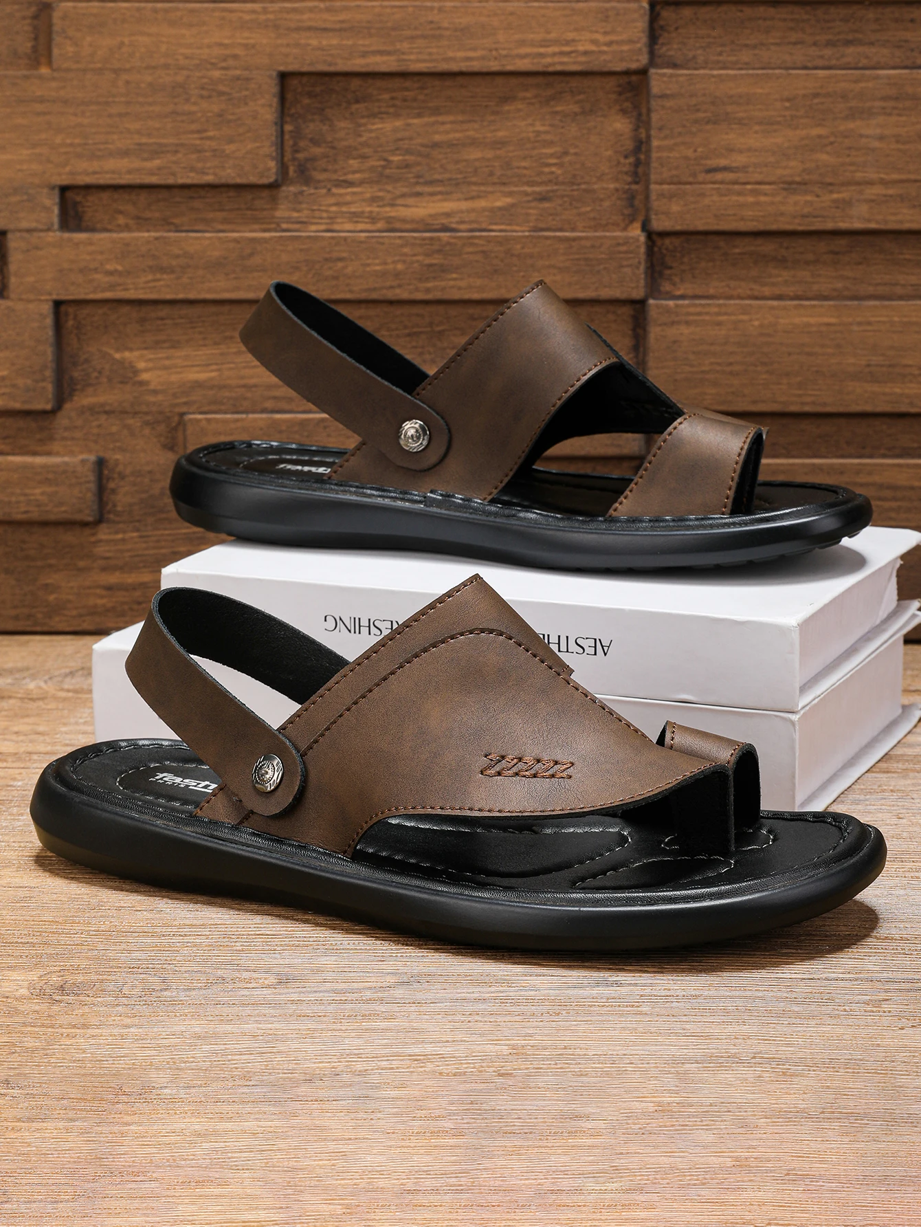 Beach Shoes Summer New Genuine Leather Men's Sandals Casual Breathable Non-Slip Dual-Use Flip-Flops Slippers