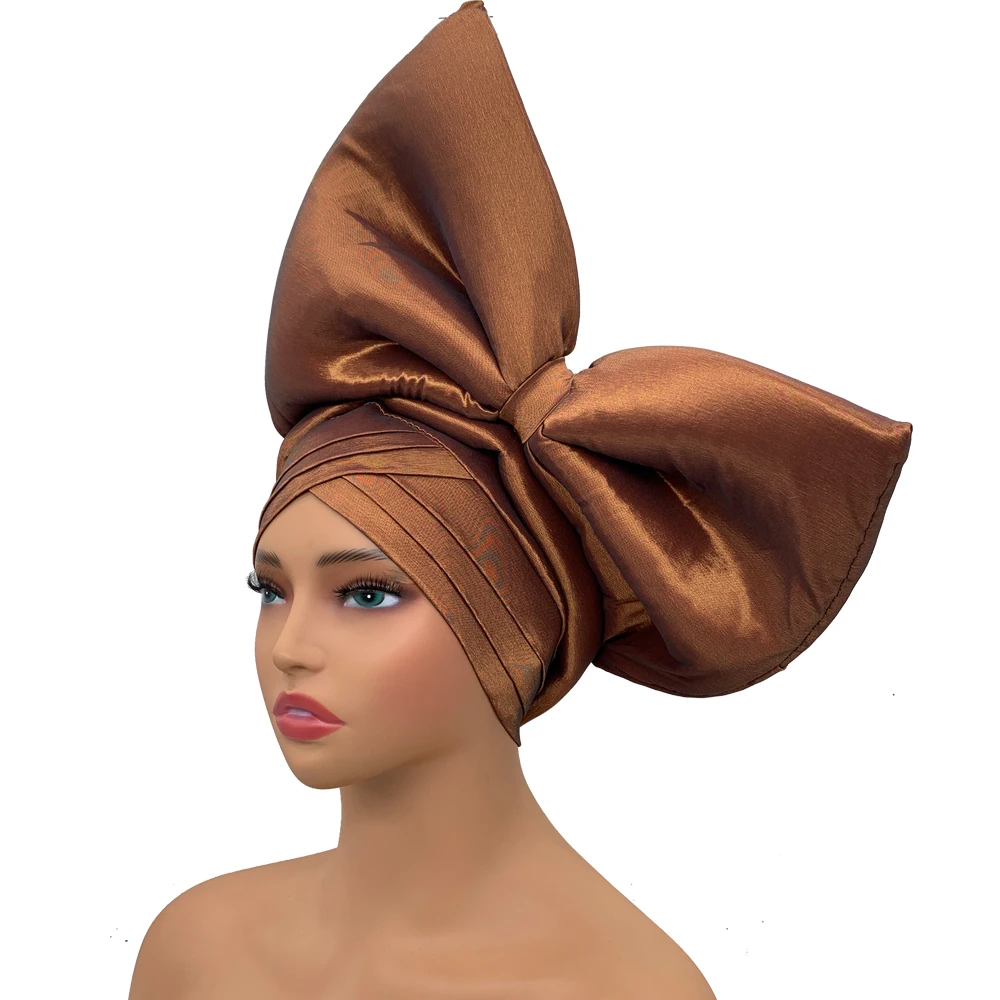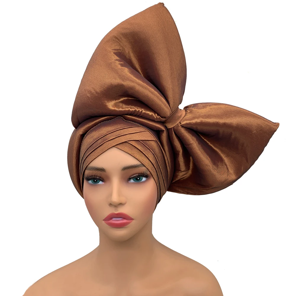 Big Bowknot Turban Cap for Women Exaggerated Headpiece African Auto Gele Headtie Nigeria Party Headwear Hat Lady Head Wraps