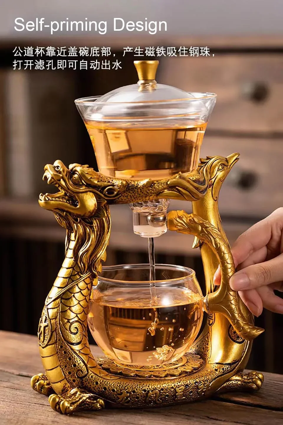 BOZZH Creative Dragon Glass Teapot Magnetic Diversion Rotating Cover Bowl Water Tea Cup Pu'er Oolong Drinkware Dropshipping Tea