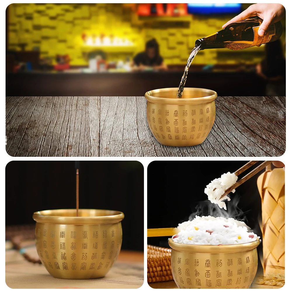 Brass Baifu Bowl Pure Brass Hundred Blessings Cup Table Small Decoration Ashtray Dessert Bowl Fortune Map Treasure Collection