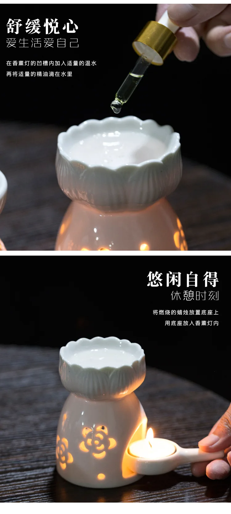 Ceramic Essential Oil Diffuser Retro Aromatherapy Flame Bedroom Living Room Decor Relaxation Gift for Home Romantic Lighting