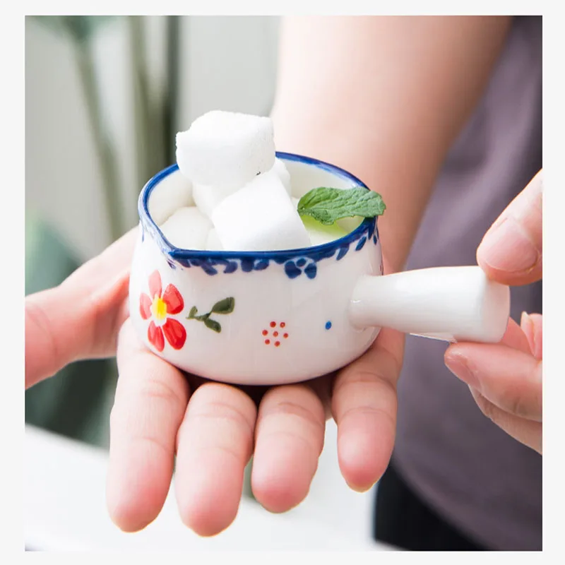Ceramic Milk Jugs Creamer Cup with Handle Japanese Milk Frothing Coffee Sugar Pot Jam Bowl Seasoning Sauce Dish Kitchen Cookware