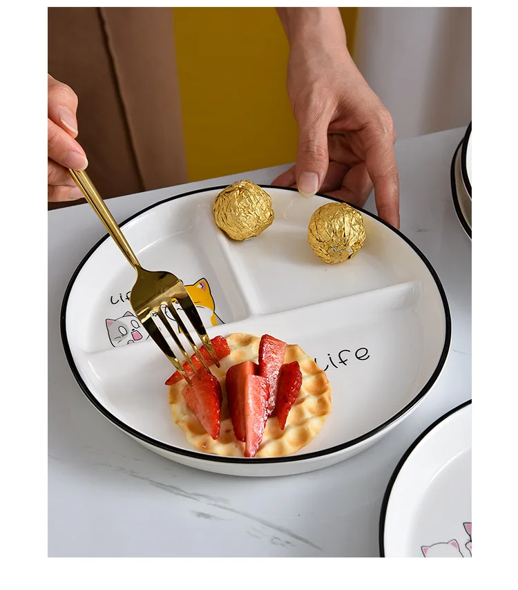 Ceramic Plate Cartoon Fat-reducing Sub-plate, Sub-plate, Household Dish Plate, Three-plate Breakfast Plate, Tableware Gift Set