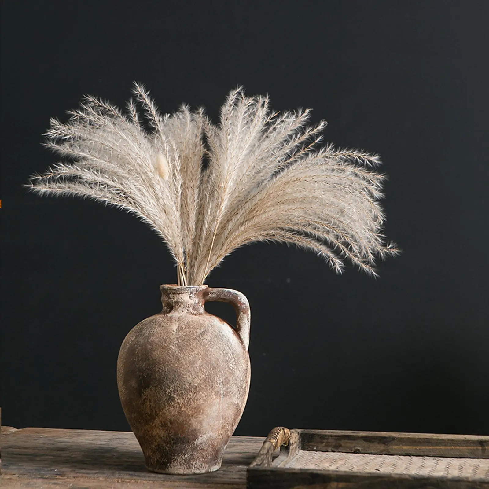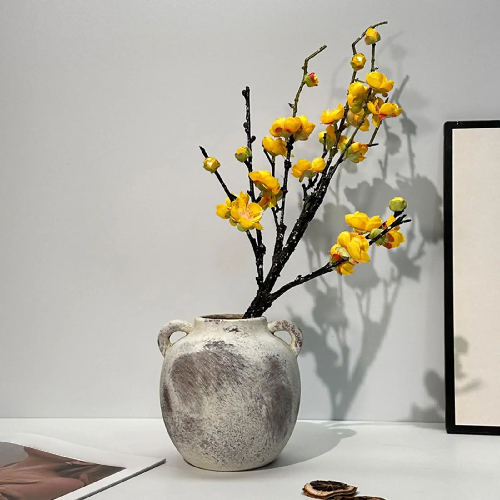 Ceramic Vase Retro Wabi Sabi Pottery Handmade Distressed Flower Vase Plant Container for Entryway Dining Room Bookshelf Rustic