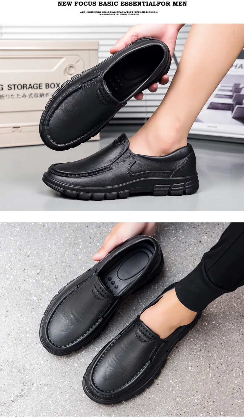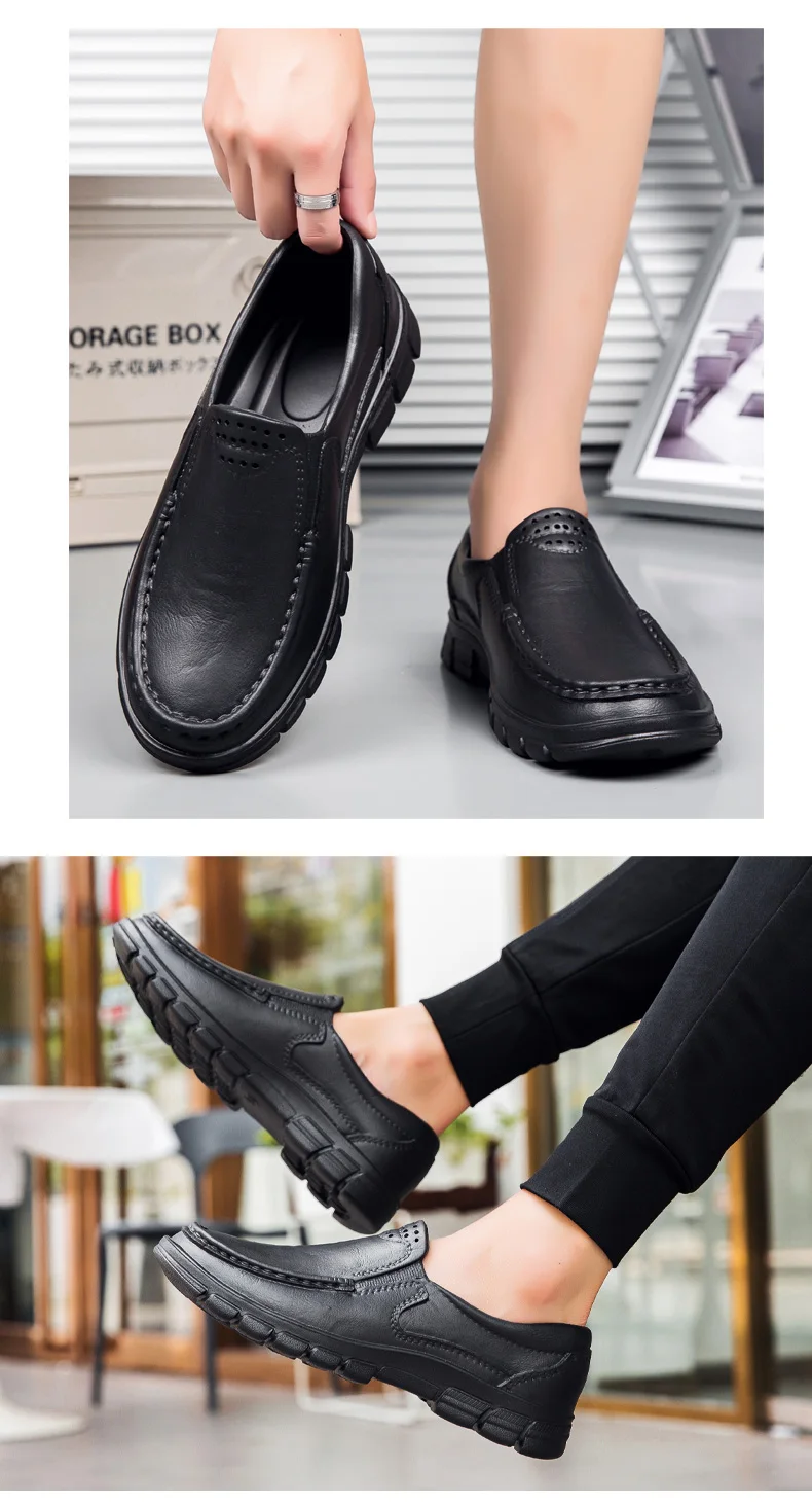 Chef Shoes Non-slip Oil-proof Kitchen Work Shoes Business Casual Leather Shoes Staff Comfortable Loafers Outdoor Fishing Shoes