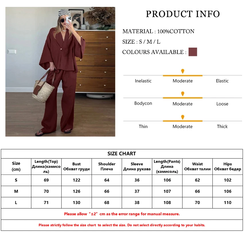 Product Name: Fashion Loose Red Cotton Women's Two Pieces Set 2025