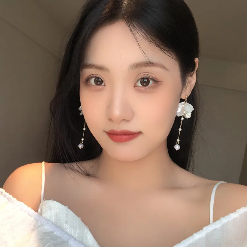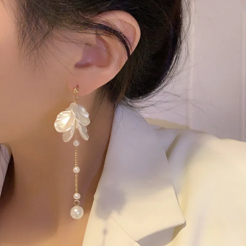 Classic Natural Shell Pearl Long Tassel Earrings for Women Ladies Gold Color Chain White Drop Earrings Bridal Jewelry Gift