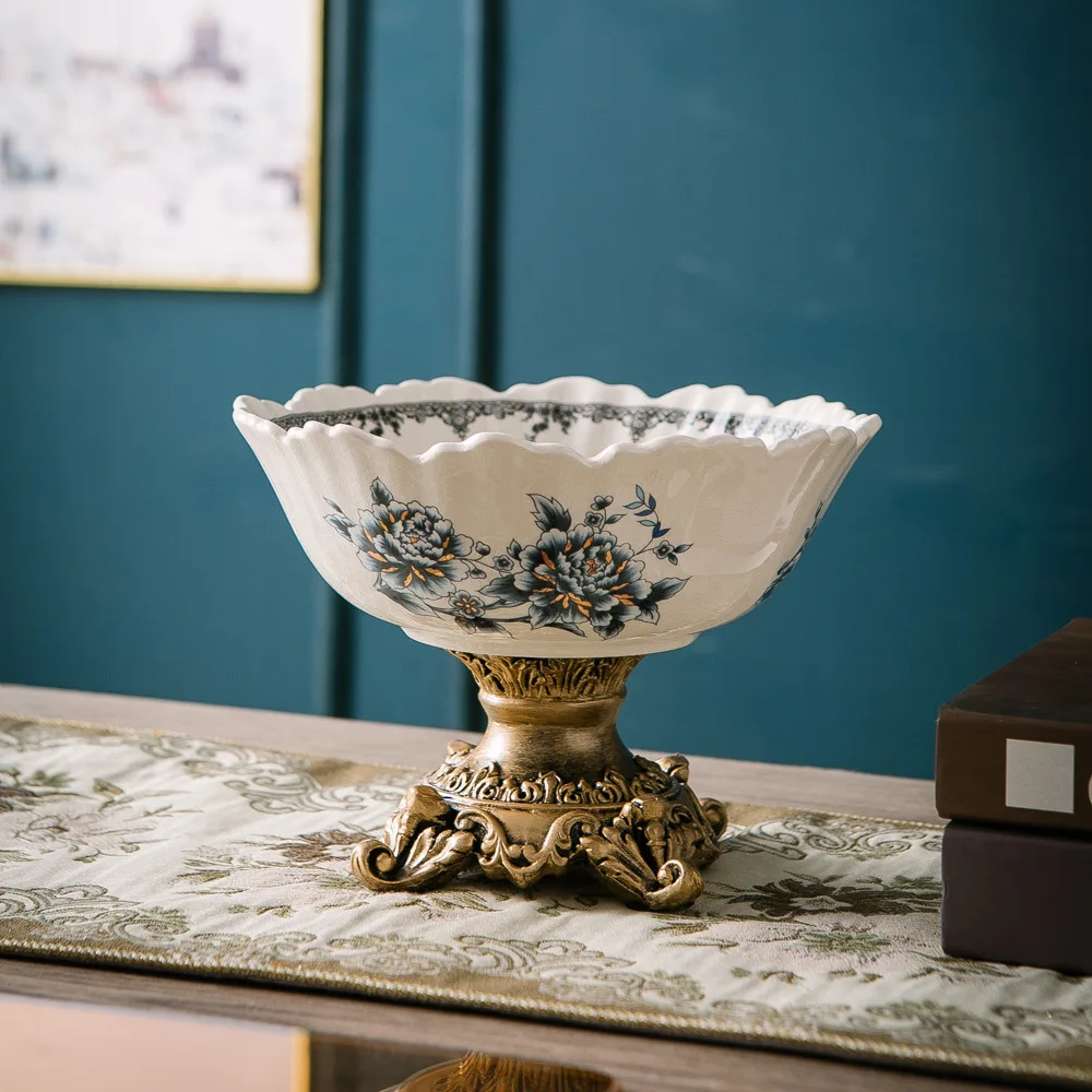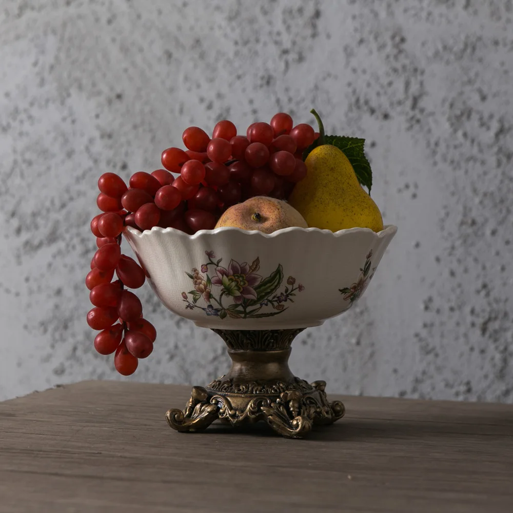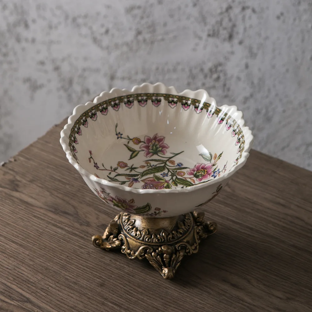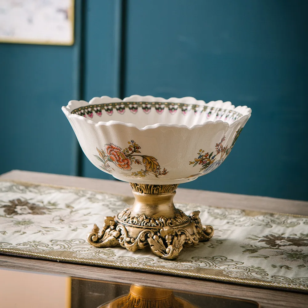 Classical Colorful Flower Pattern Fruit Bowl Storage Trays Snack Dessert Plate High Footed Fruits Plate Coffee Table Fruits Tray