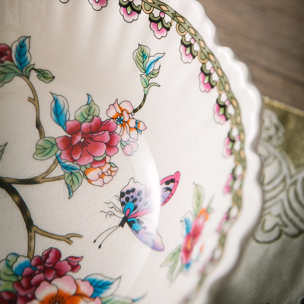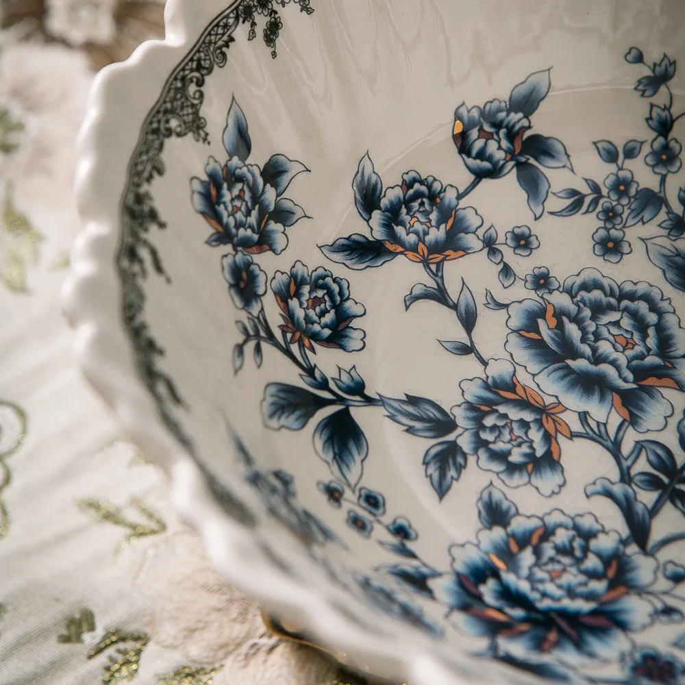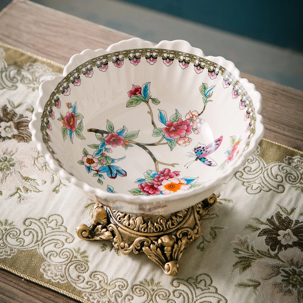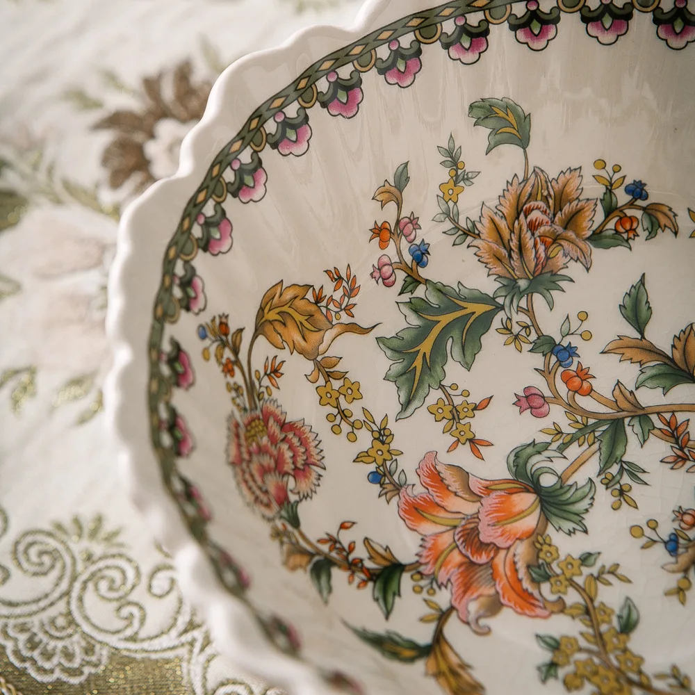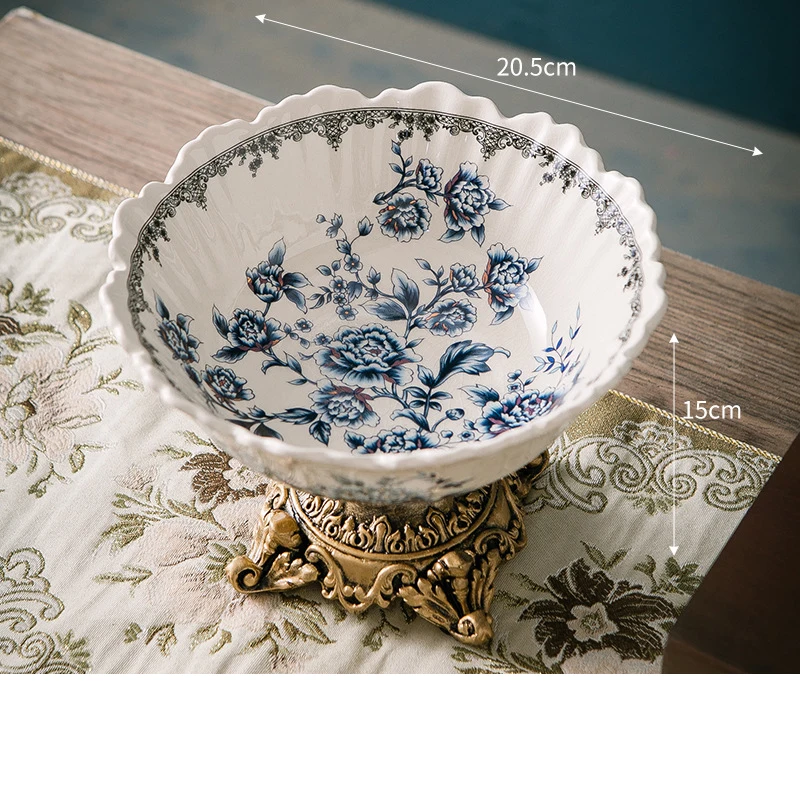 Classical Colorful Flower Pattern Fruit Bowl Storage Trays Snack Dessert Plate High Footed Fruits Plate Coffee Table Fruits Tray