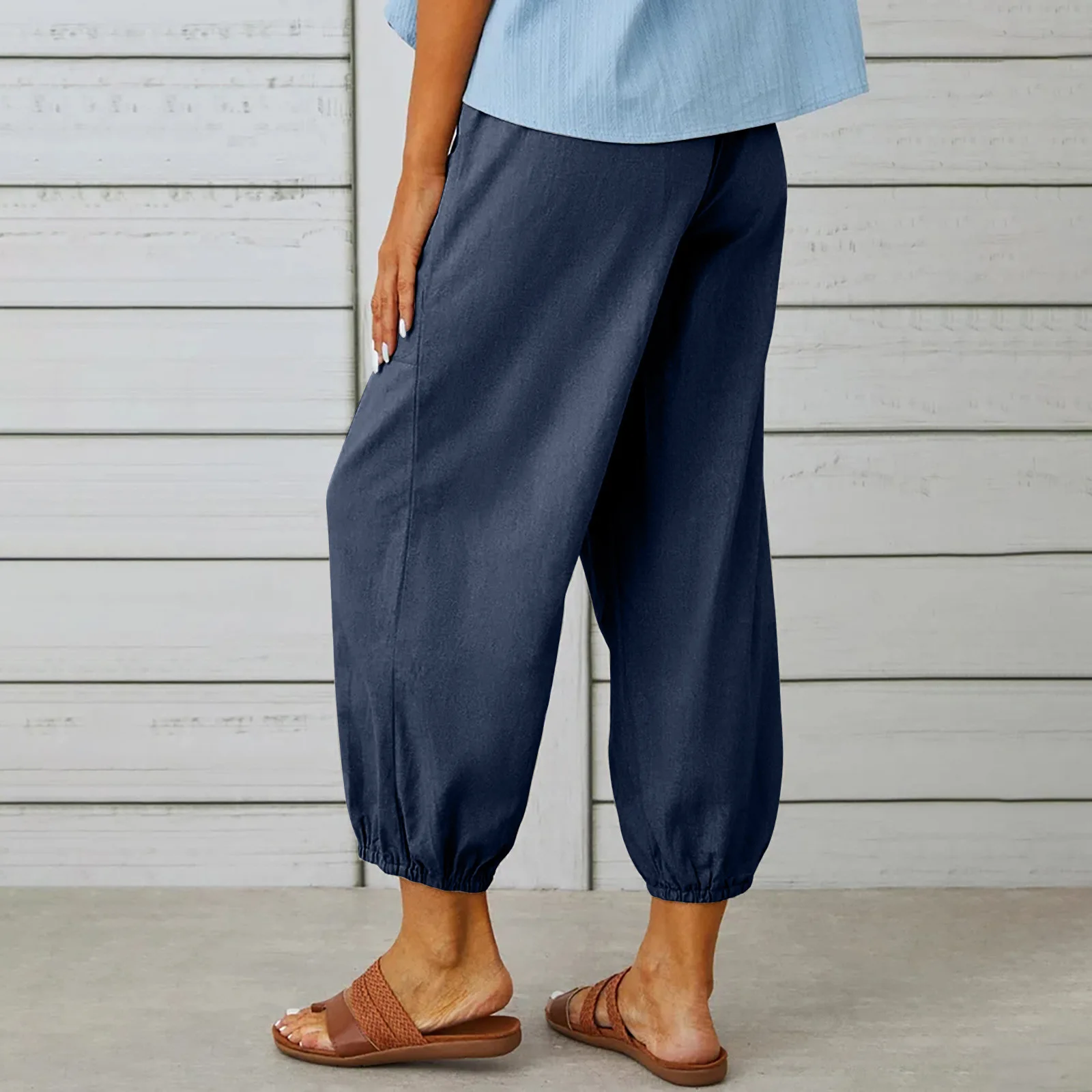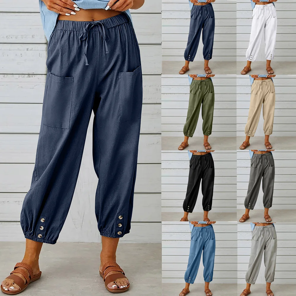 Cotton Linen Harem Pants Women Casual Elastic High Waist Lace Up Loose Ankle Trousers Vintage Harajuku Wide Leg Straight Pants