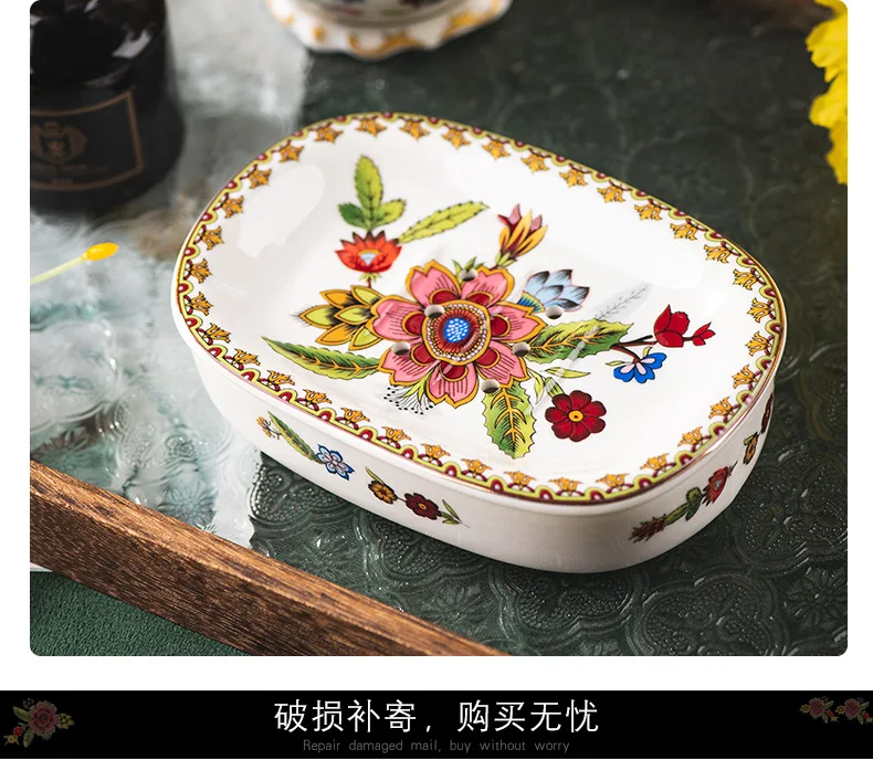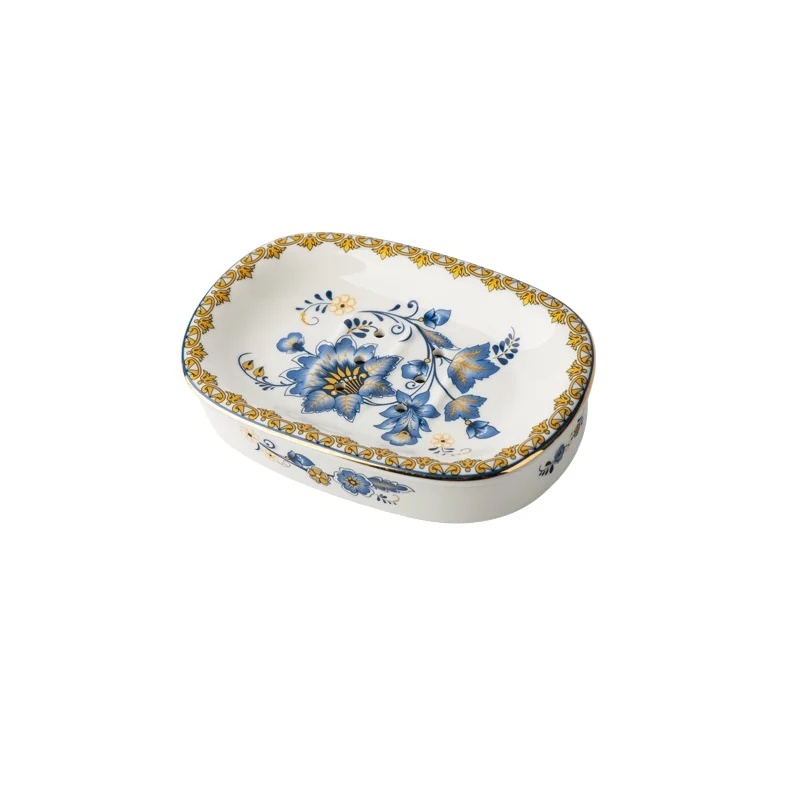 Creative Gold-plated Painted Flower Soap Dish Household Ceramic Drain Double Soap Box Storage Shelf Bathroom Accessories Modern