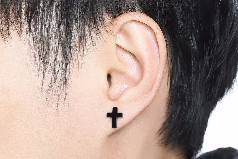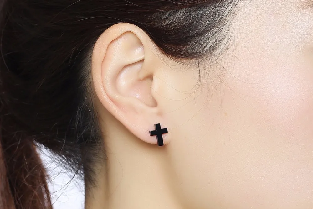 Cross Earring Black Stainless Steel Earrings Simple Modern Minimalist Everyday Stud Earings for Men Women Unisex Jewelry