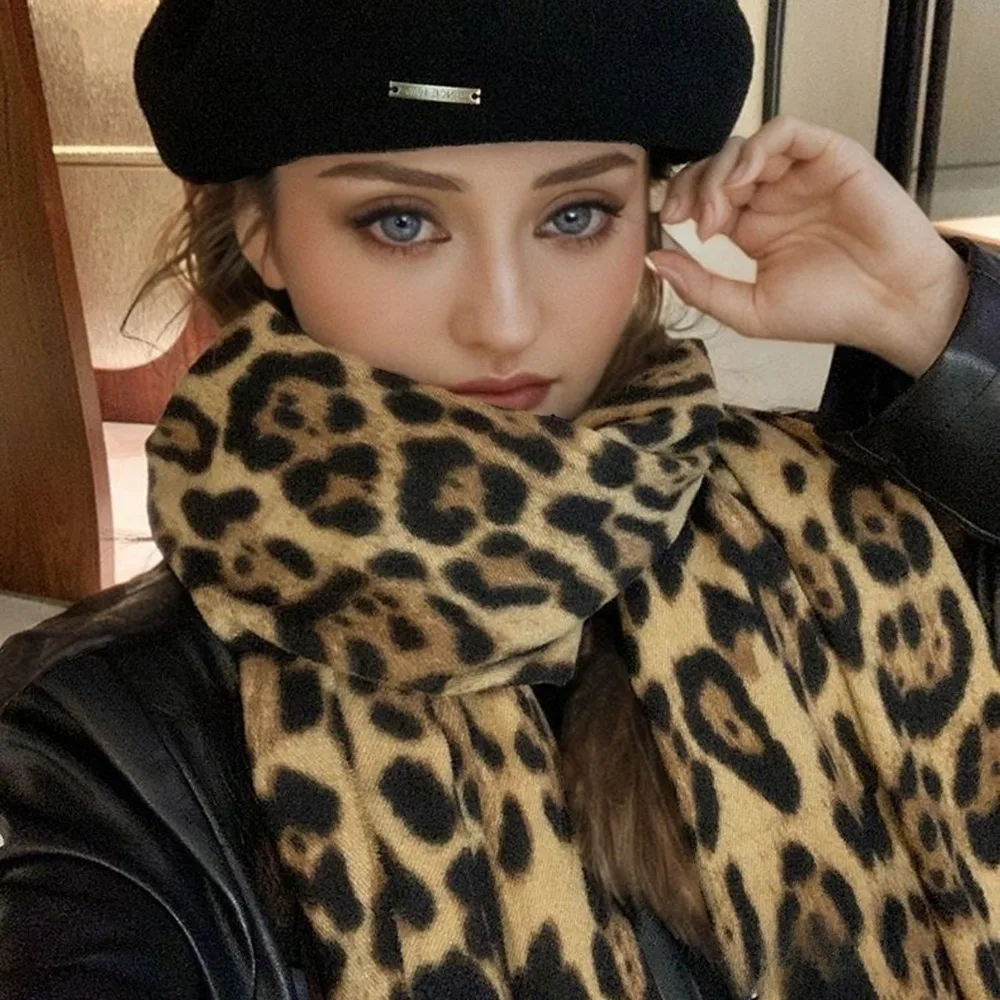 Design Leopard Scarf Winter Warm Pashmina Shawl Luxury Cashmere Wraps Fashion Women Long Blankets Scarves Fringes